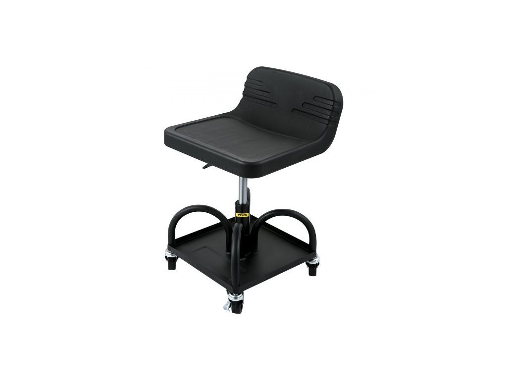 Pojízdná garážová stolička , nosnost 136 kg, nastavitelná výška od 40 cm do 52,1 cm, sedadlo pro mechaniky s otočnými kolečky o 360 stupňů a odkládací plochou na nářadí, do dílny a autoservisu, černá