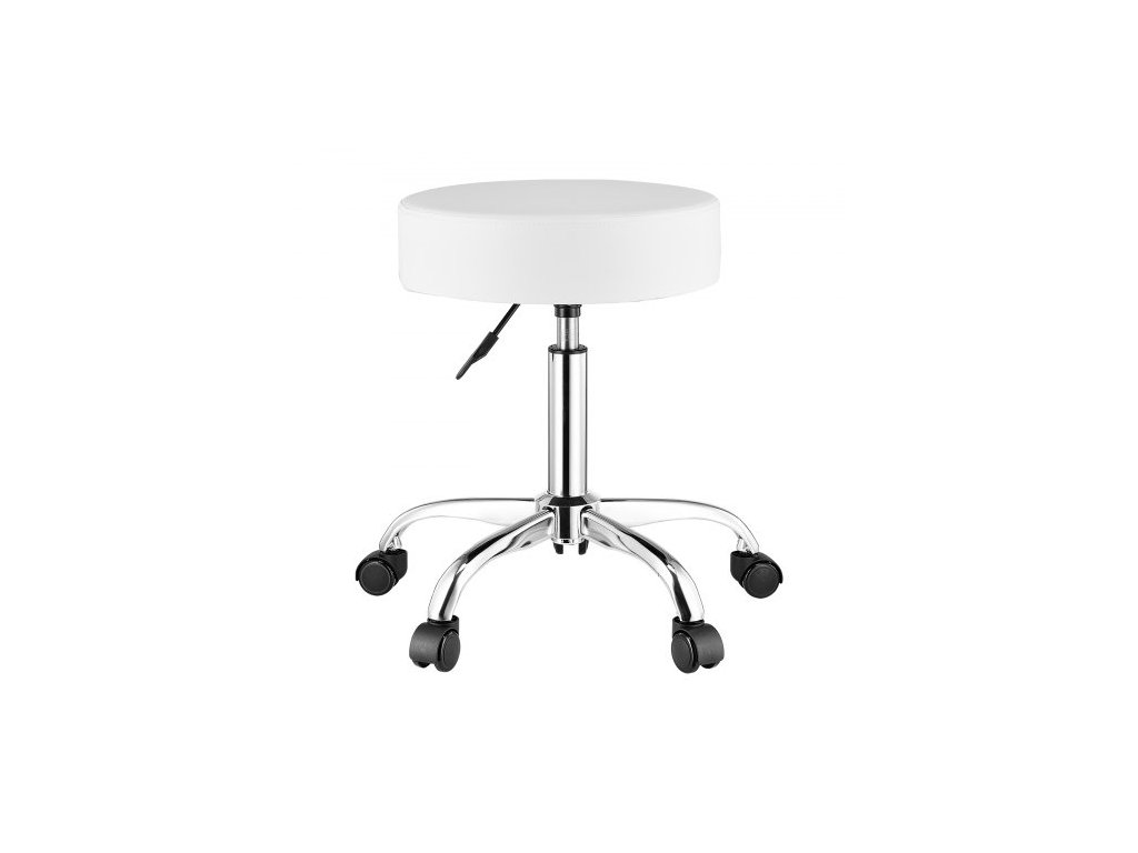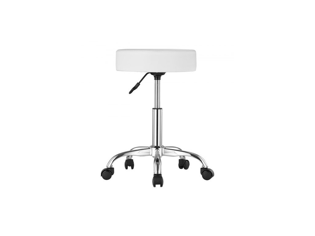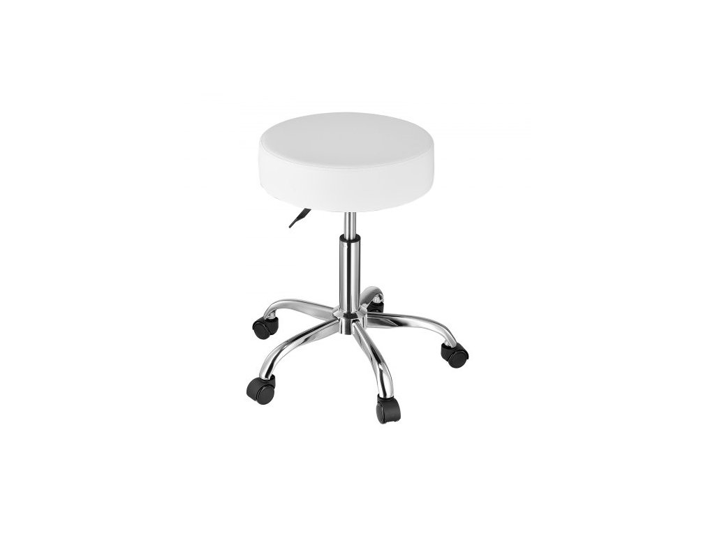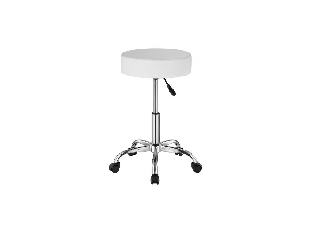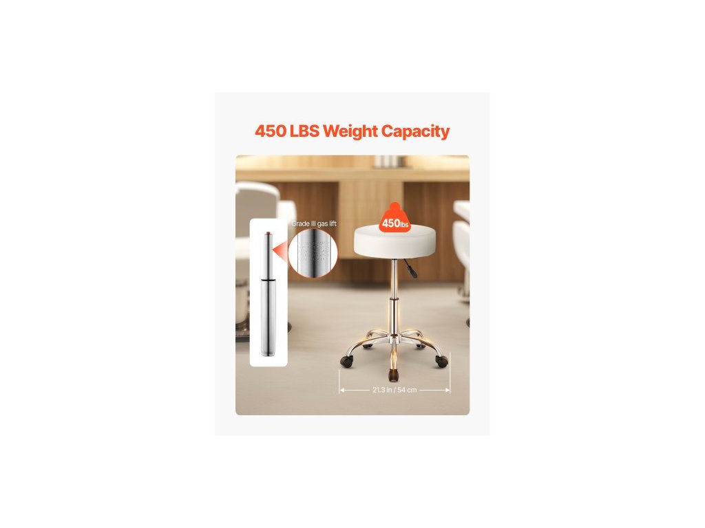 Pojízdná stolička s kolečky, nosnost 450 liber, kulatá pojízdná stolička, výškově nastavitelná, zesílená PU kůže, otočná stolička pro salon, lázně, masáže, tetování, kliniky, bílá
