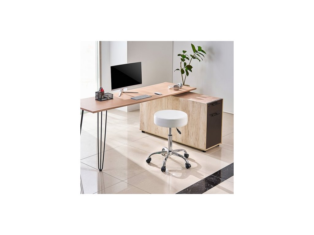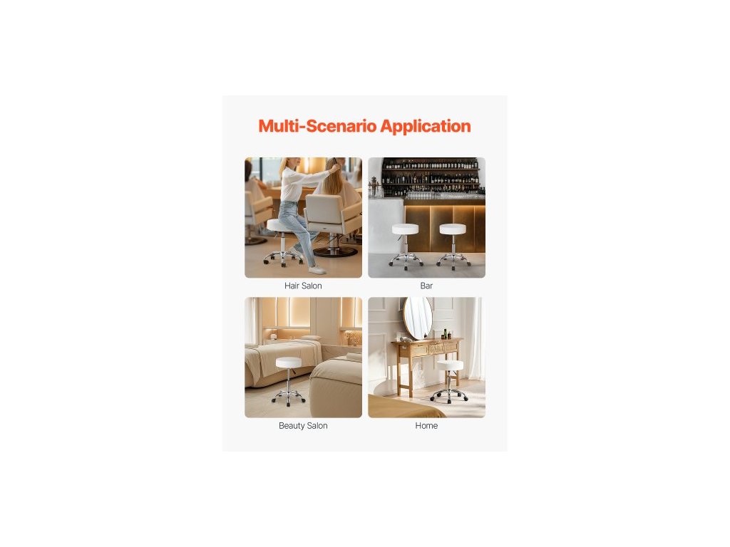 Pojízdná stolička s kolečky, nosnost 450 liber, kulatá pojízdná stolička, výškově nastavitelná, otočná stolička z tlusté PU kůže pro salon, lázně, masáže, tetování, kliniky, bílá360° PU kolečka