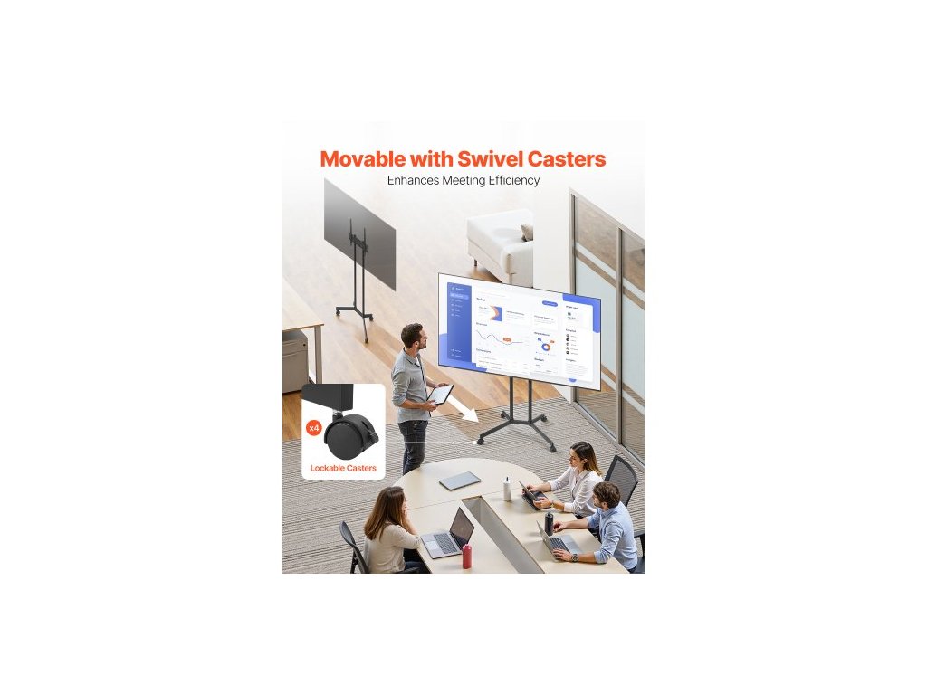 Pojízdný televizní stojan , mobilní televizní vozík pro obrazovky 32-65 palců, výškově nastavitelný, přenosný stojan na monitor s kolečky, nosnost až 38 kg, pro obývací pokoj, ložnici, kancelář, venkovní použití, max. VESA 400x400 mm