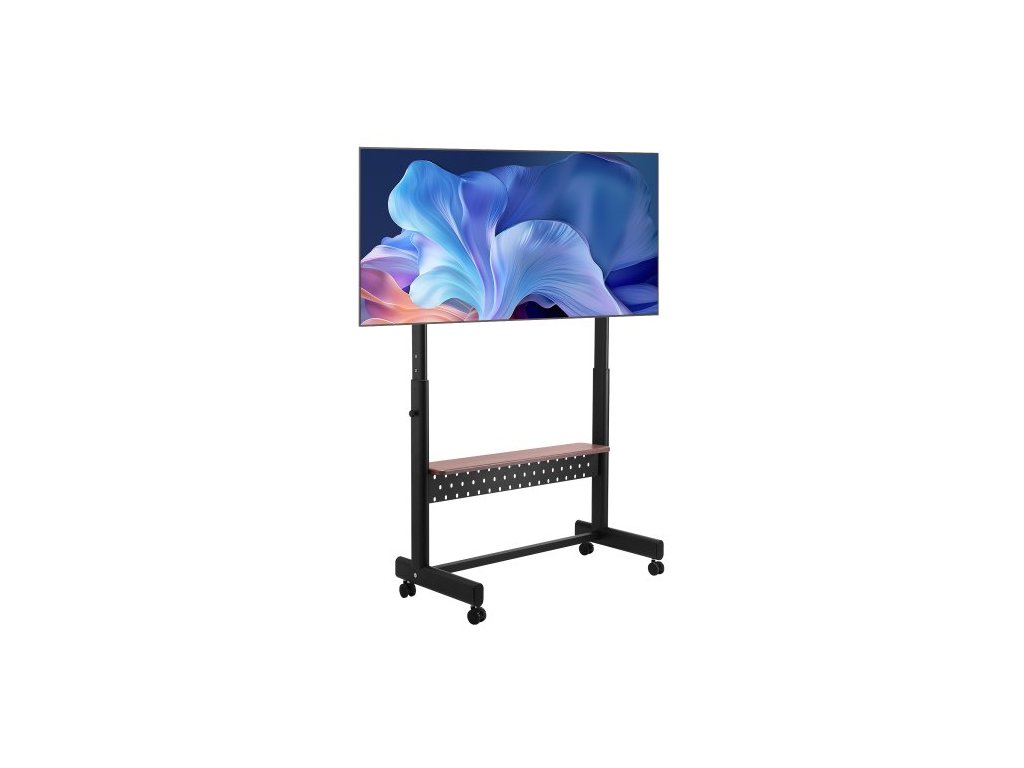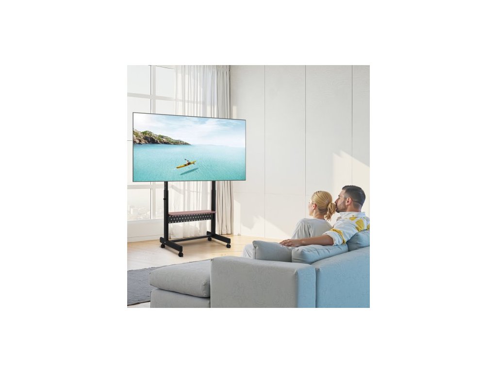 Pojízdný televizní stojan , mobilní televizní vozík pro obrazovky 55-100 palců, výškově nastavitelný přenosný stojan na monitor s podnosem, nosnost až 205 liber pro obývací pokoj, ložnici, kancelář, venkovní použití, max. VESA 800 x 600 mm