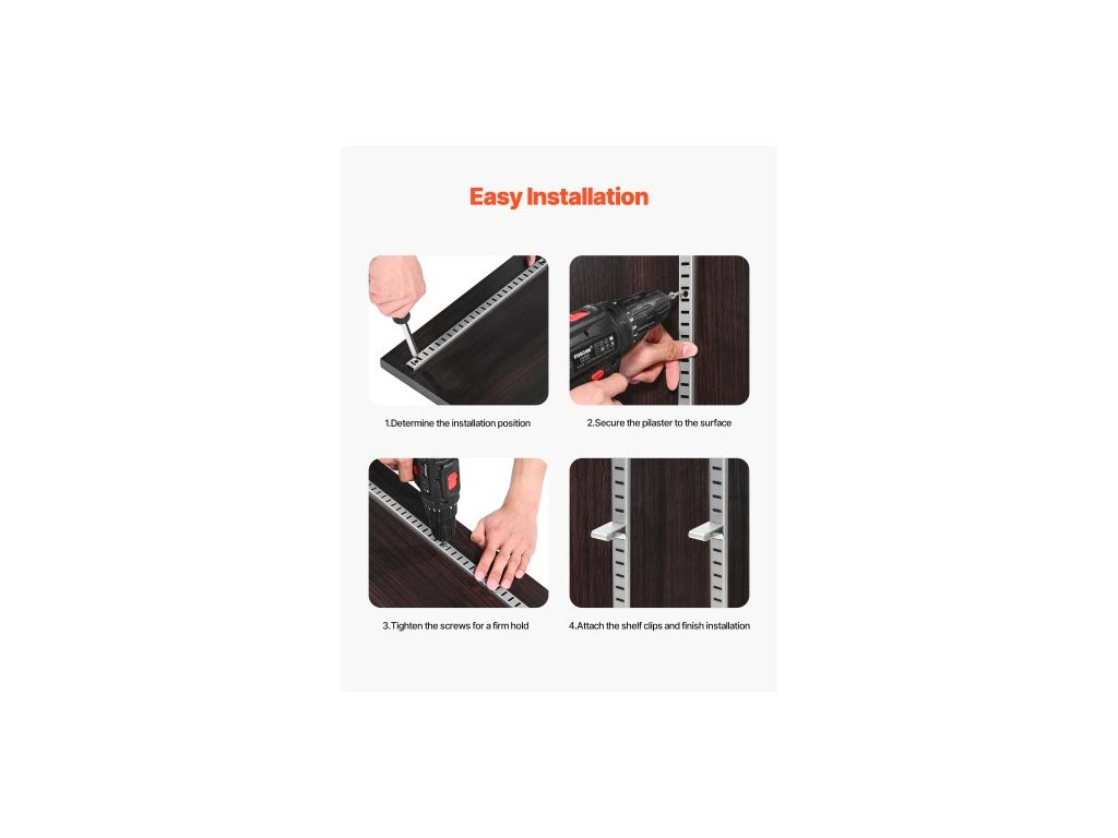 Policový pilastr , balení po 20 kusech, nastavitelné konzole na police, ocelové držáky na pilastrové lišty se 140 šrouby, vhodné pro nástěnné policové systémy, organizaci skříněk a šatních skříní