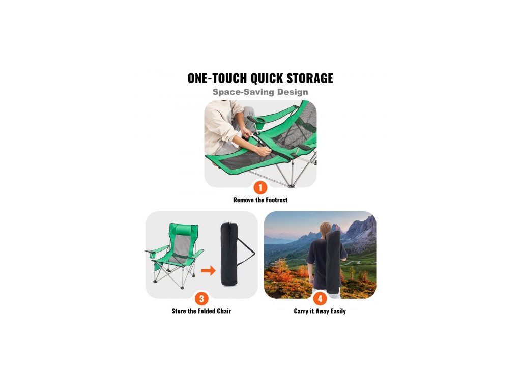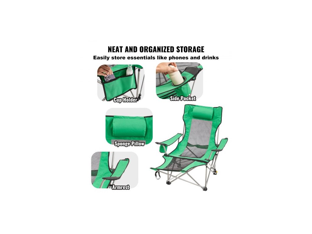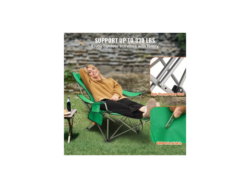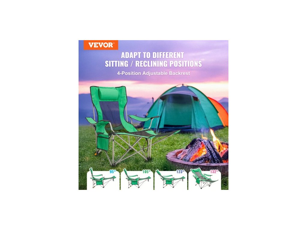 Polohovací kempingová židle , přenosná kempingová židle s nosností 150 kg, skládací kempingová židle se 4 polohami zatížení s opěrkou nohou, držákem na nápoje, boční kapsou a opěrkou hlavy, pro kempování, rybaření a outdoorové aktivity