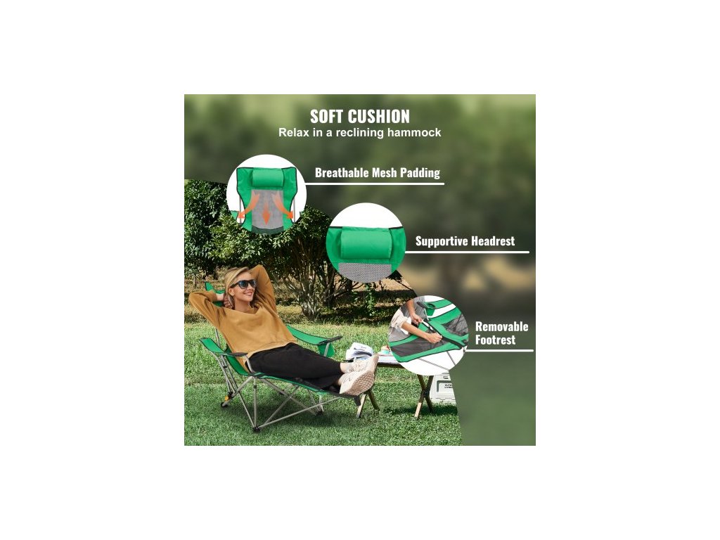 Nosnost: 149,69 kg, Barva: Zelená, Číslo modelu položky: HKC-1001P-3, Hmotnost výrobku: 4,45 kg, Rozměry výrobku: 1530 x 830 x 730 mm / 60,24" x 32,68" x 28,74" (v polohovací poloze), Hlavní materiál: Legovaná ocel + síťovina, Nastavení opěradla: 4stupňové nastavitelné