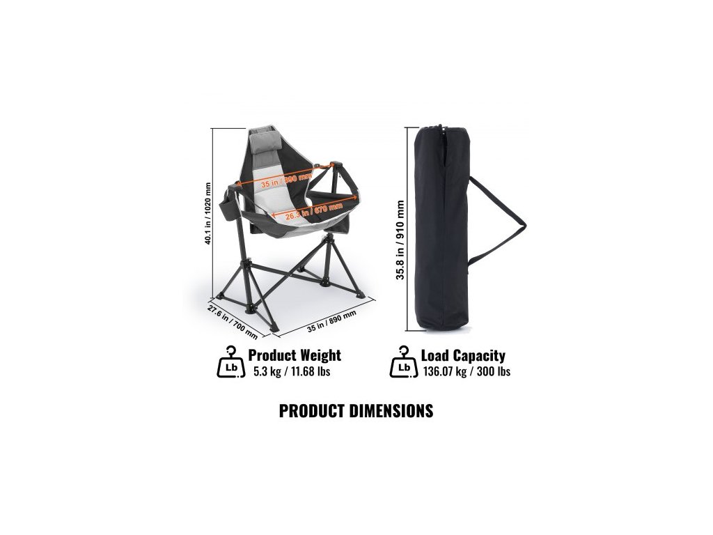 Nosnost: 136,07 kg, Barva: Černá, Číslo modelu položky: HKC-1003SW, Hmotnost výrobku: 5,3 kg, Rozměry výrobku: 70 x 91 x 91,5 cm / 27,55 x 35,82 x 36,02 palce (rozměry rámu), Hlavní materiál: Legovaná ocel + oxfordská tkanina 600D + stříkaná pěna