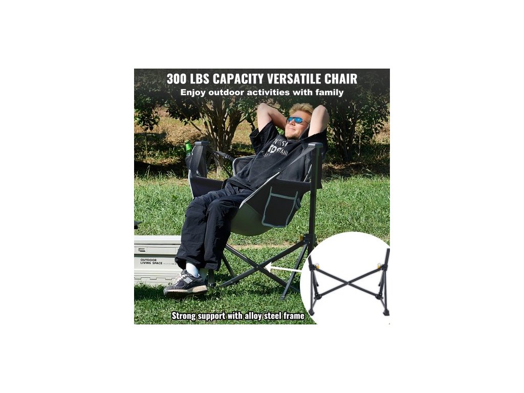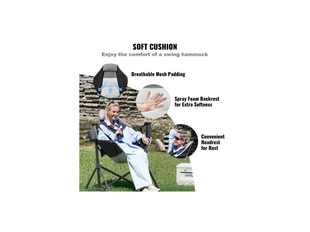 Polohovací kempingové křeslo , houpací síť s nosností 136 kg, skládací houpací křeslo s držákem na nápoje, úložným vakem, opěrkou hlavy a nastavitelným opěradlem, pro kempování a další venkovní aktivityNavrženo pro pohodlí