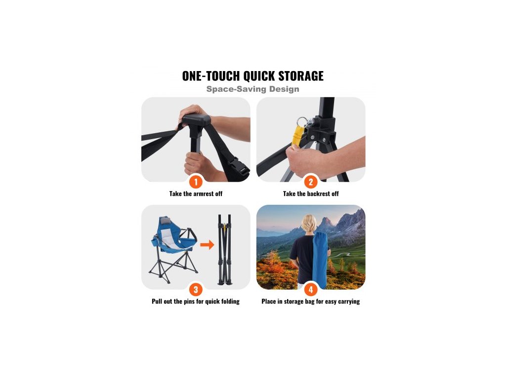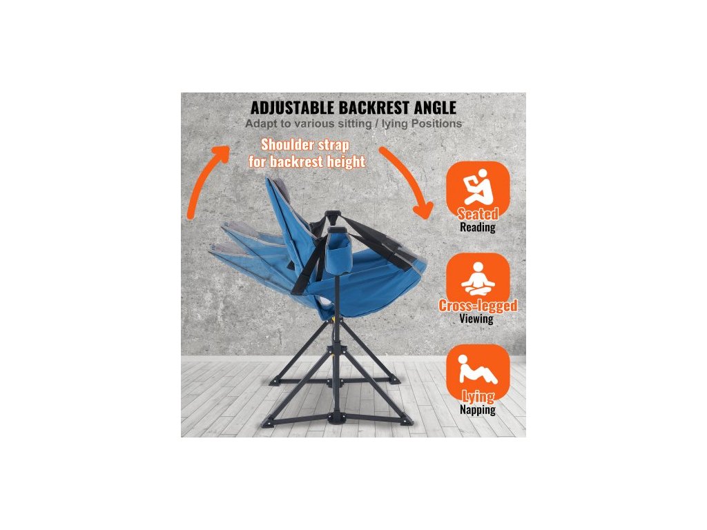 Polohovací kempingové křeslo , houpací síť s nosností 136 kg, skládací houpací křeslo s držákem na nápoje, úložným vakem, opěrkou hlavy a nastavitelným opěradlem, pro kempování a další venkovní aktivityNavrženo pro pohodlí