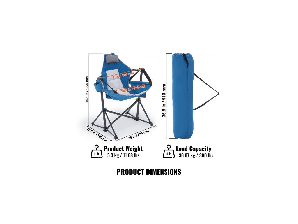 Nosnost: 136,07 kg,Barva: Modrá,Číslo modelu položky: HKC-1004SW,Hmotnost výrobku: 5,3 kg,Rozměry výrobku: 70 x 91 x 91,5 cm / 27,55 x 35,82 x 36,02 palce (rozměry rámu),Hlavní materiál: Legovaná ocel + oxfordská tkanina 600D + stříkaná pěna