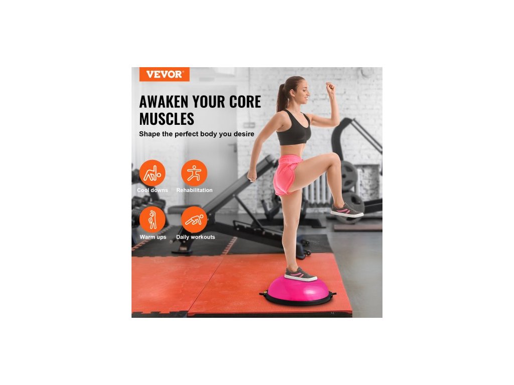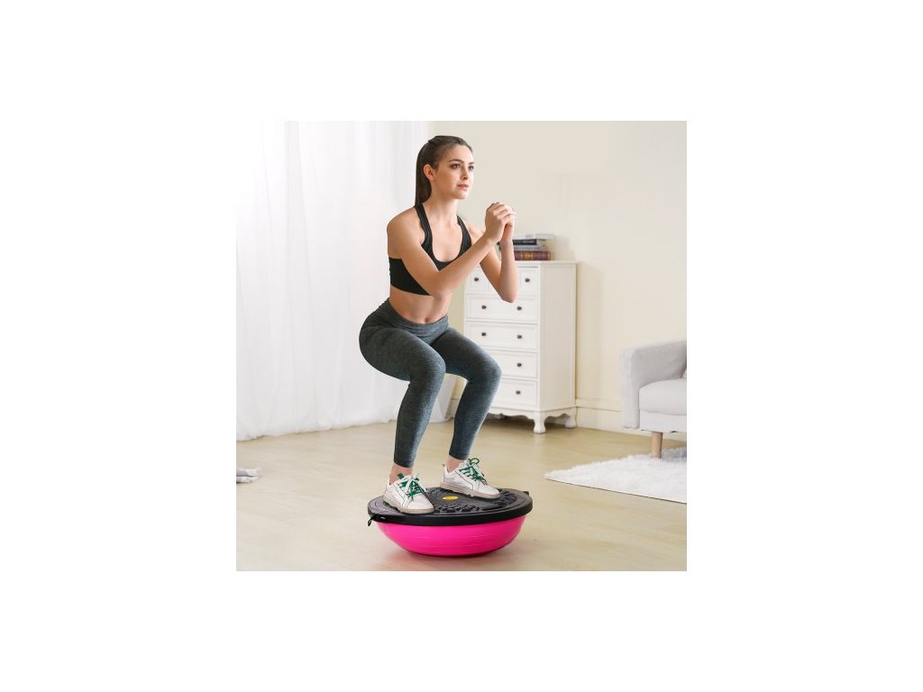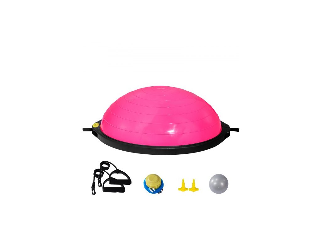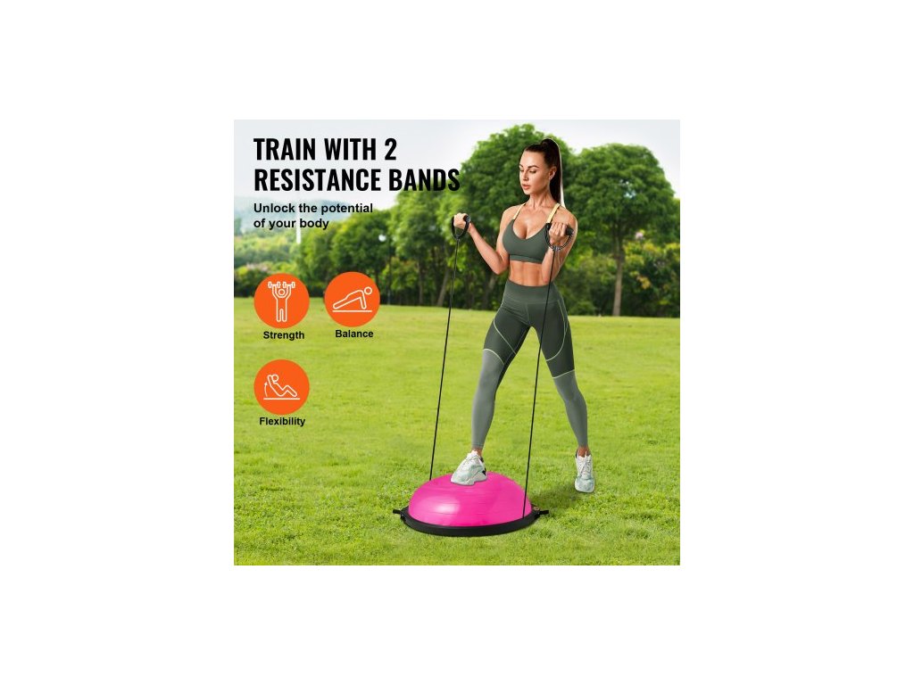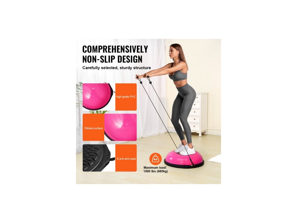 Poloviční posilovací míč, balanční míč o průměru 26 palců, stabilizační míč s nosností 1500 liber, míč na jógu s odporovými pásy a pumpou na nohy, posilovací míč pro domácí posilování celého těla, růžovýNekonečné možnosti cvičení