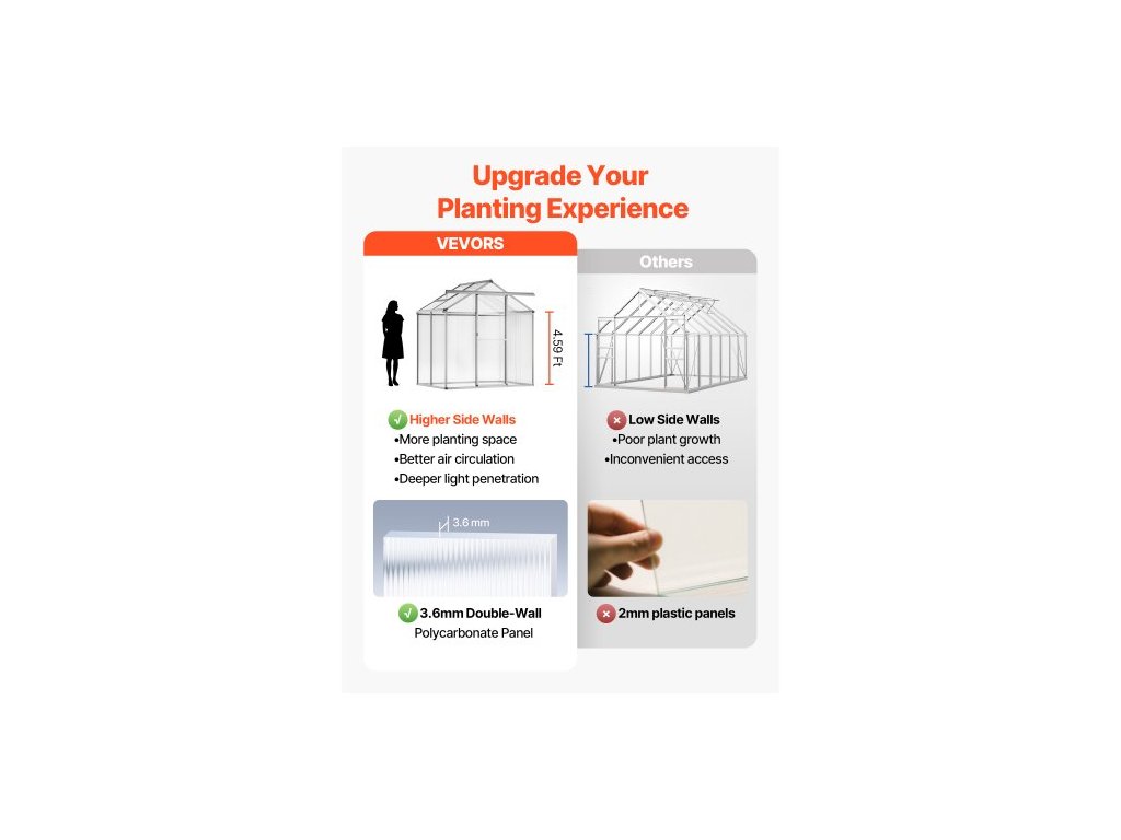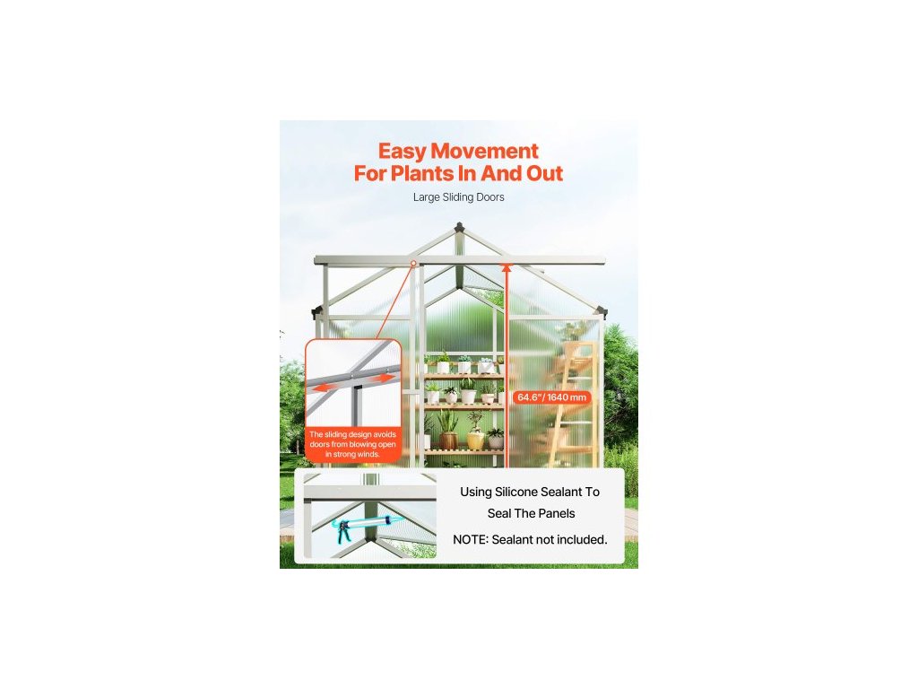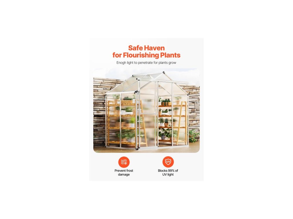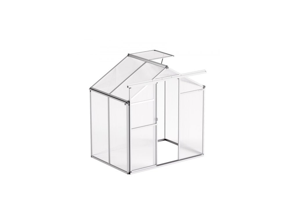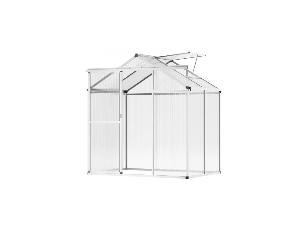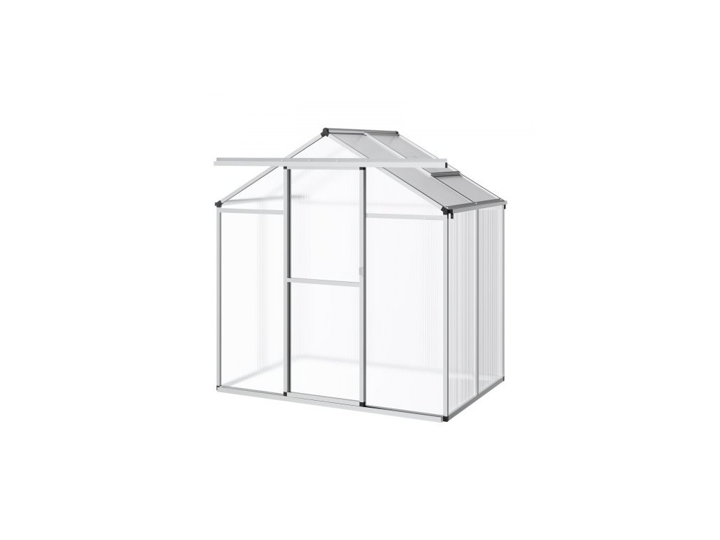 Polykarbonátový skleník , 6 x 4 stopy, venkovní skleník s nastavitelnými větracími okny, skleník ve stylu pavilonu s posuvnými dveřmi, sada pro velký hliníkový skleník na zahradu a dvůr