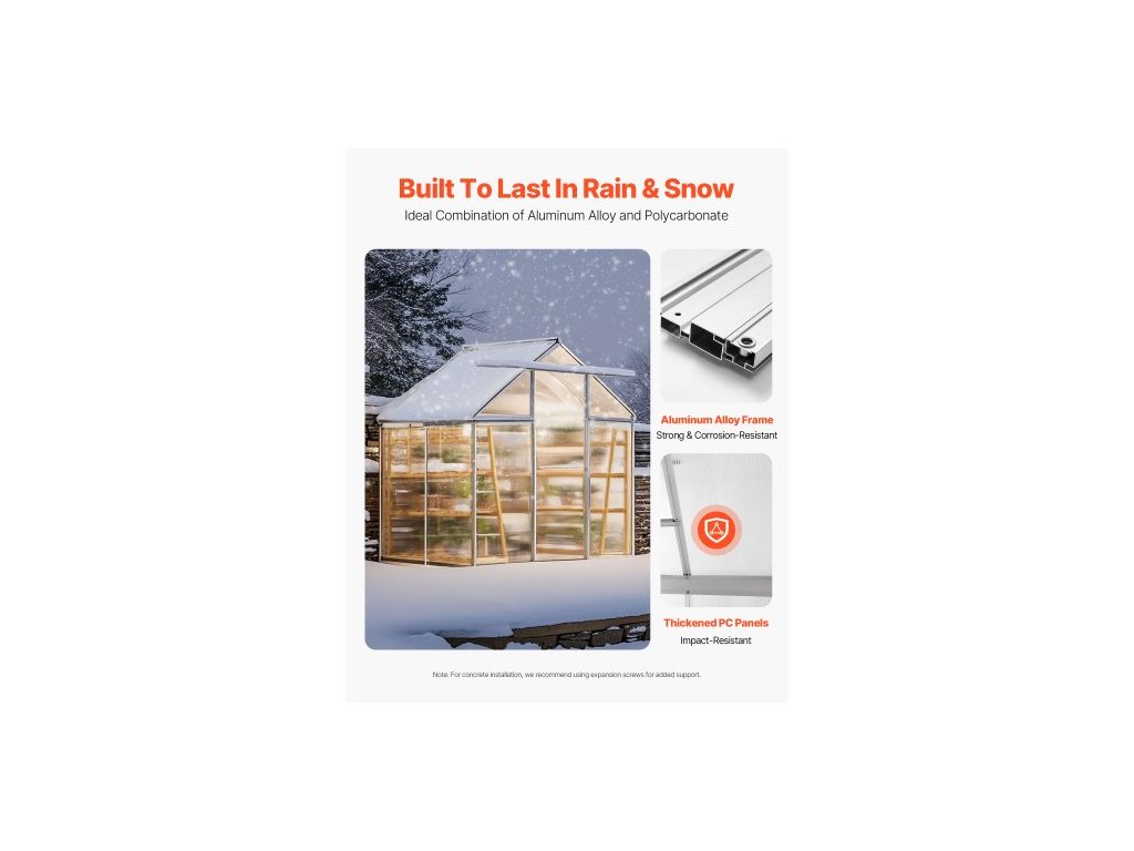 Balíček B: 6 kg / 13,23 lbs,Typ dveří: Posuvné dveře (rozměry: 627 x 1640 mm / 24,7 x 64,6 palce),Poznámka: Hliníkový rám a PC panely se dodávají v samostatných baleních.,Číslo modelu položky: SNG190-2,Hmotnost výrobku:,Střešní větrací otvor: Jednostranný, nastavitelný ve 3 polohách,Stabilizační patky: Železné kolíky + kotevní příslušenství,Balíček A: 12,5 kg / 27,56 lbs,Rozměry výrobku: 6,06 x 4,13 x 6,33 stop / 184 x 126 x 193 cm, Hlavní materiál: PC, hliník