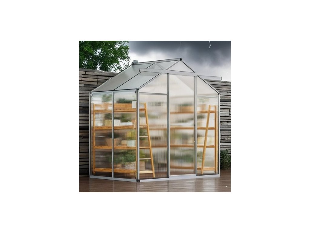 Polykarbonátový skleník , 6 x 4 stopy, venkovní skleník s nastavitelnými větracími okny, skleník ve stylu pavilonu s posuvnými dveřmi, sada pro velký hliníkový skleník na zahradu a dvůrChrání růst rostlin