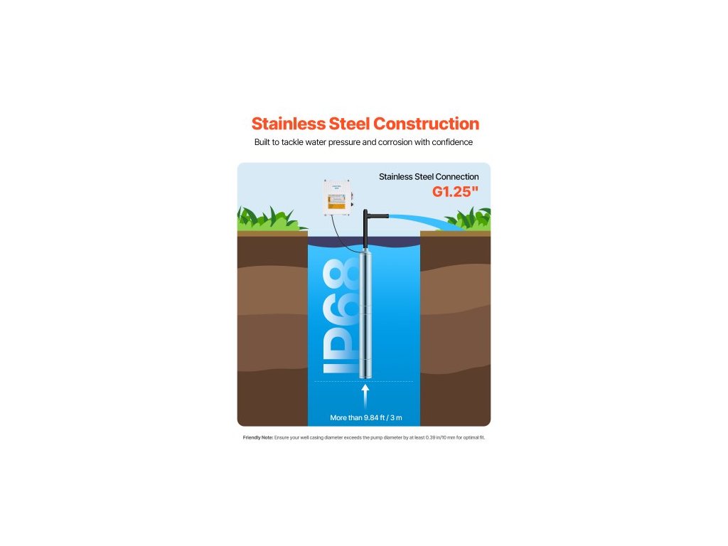 Ponorné čerpadlo do hlubinných vrtů, výstupní výkon 550 W, 230 V, průtok 65 l/min, dopravní výška 85 m (279 stop), s kabelem 20 m (65,62 stop), externí ovládací skříň, vodní čerpadlo z nerezové oceli, pro průmyslové zavlažování a domácí použití, IP68Spolehlivý výkon