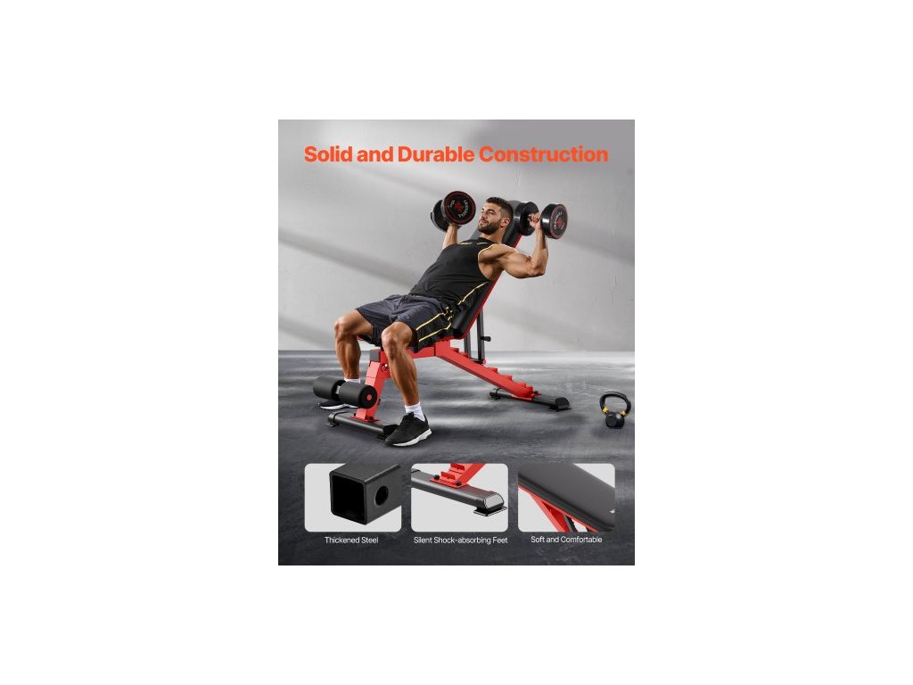 Posilovací lavice , 1200lbs, robustní, stabilní, s činkami pro posilování celého těla, nastavitelná lavice na sedy a posilování pro domácí posilování, plochá lavice s rychlým skládáním a rychlým nastavením