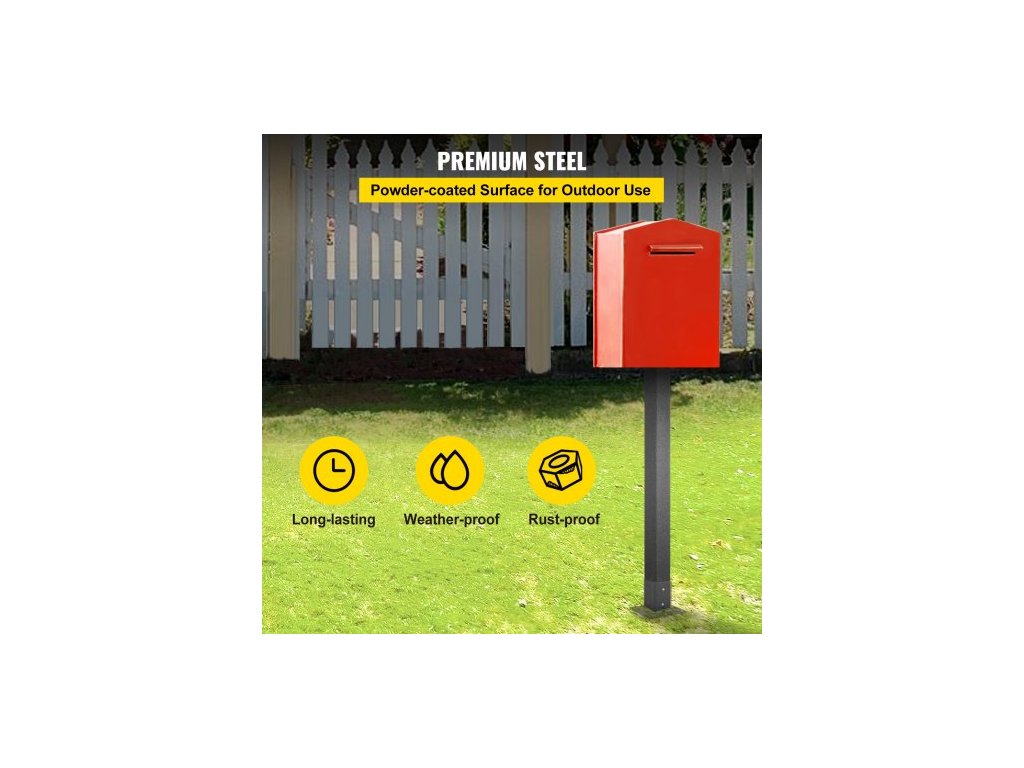 Poštovní schránka , stojan na poštovní schránku vysoký 43", sada sloupků na poštovní schránku s černým práškovým nástřikem, ocelový stojan na poštovní schránku Q235, sloupek pro povrchovou montáž na chodník a uliční obrubník, univerzální poštovní schránka pro venkovní poštovní schránkuPrémiová ocel