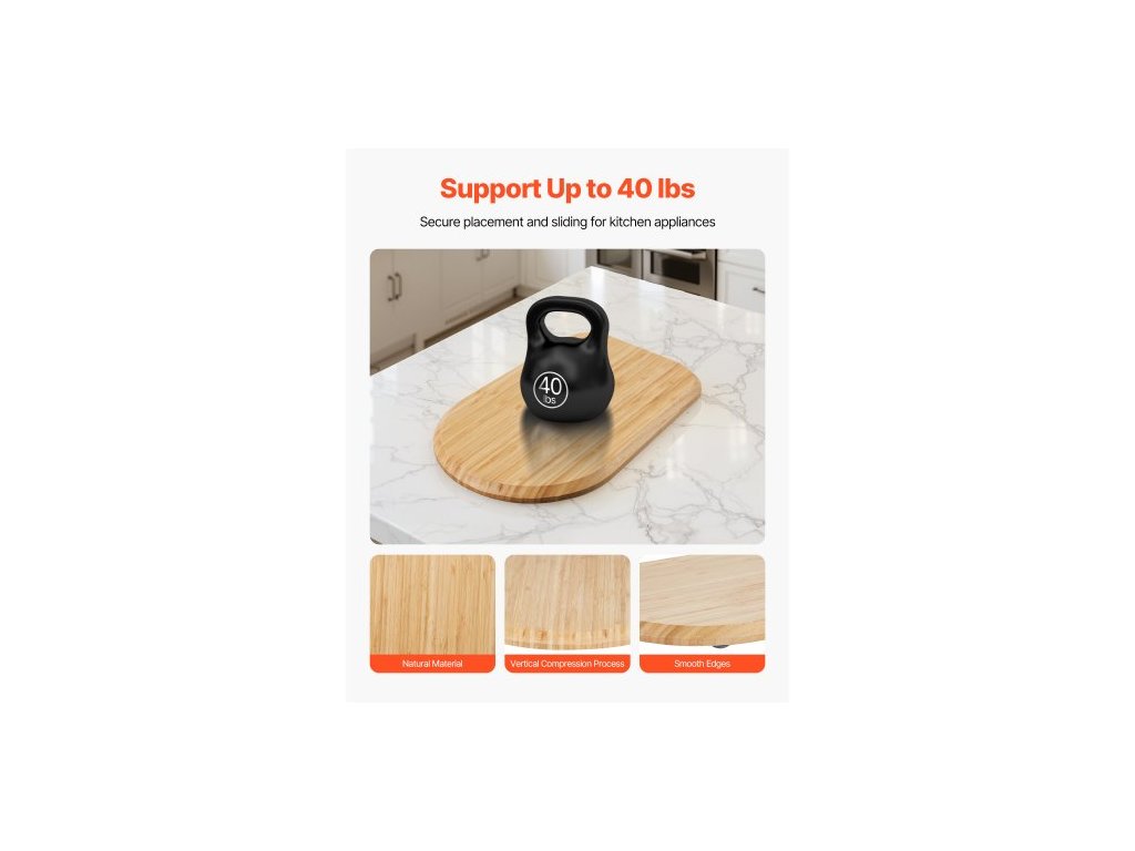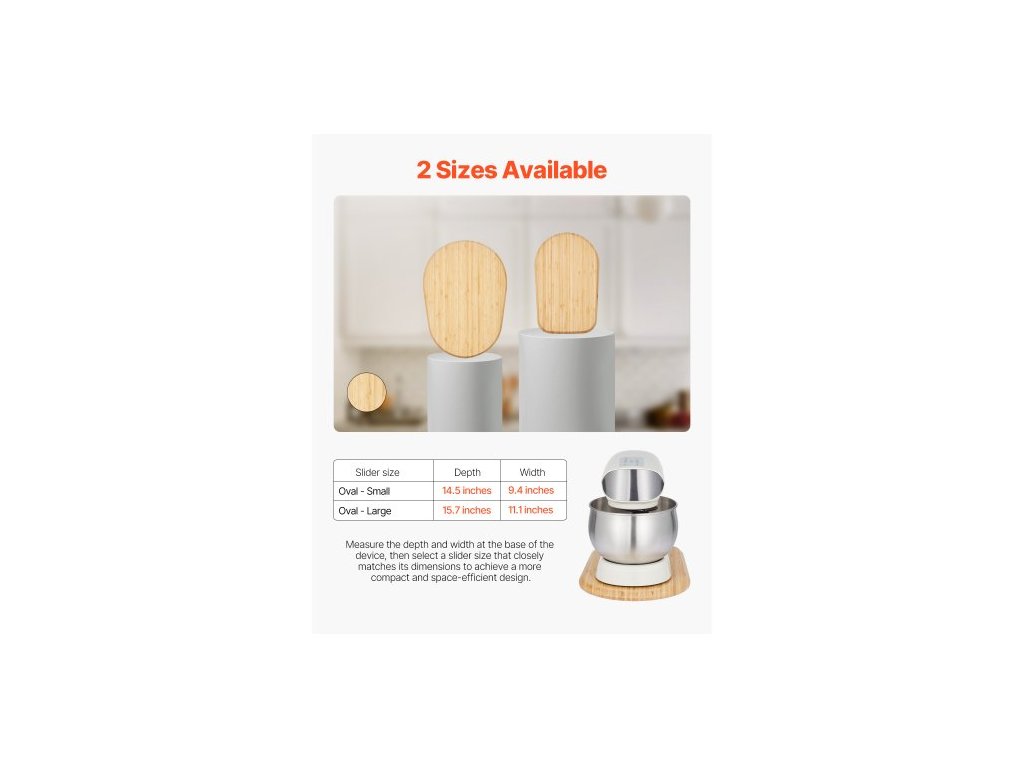 posuvník mixéru, oválný 14,5 x 9,4 palce, posuvník na spotřebič kompatibilní s naklápěcí hlavou stojanového mixéru 4,5-5 Qt, PTFE nožičky, posuvný odkládací tác na kuchyňskou linku, přírodní dřevoSnadné posouvání