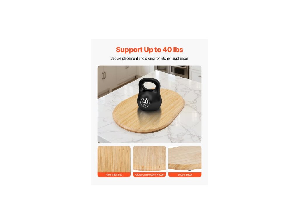 posuvník mixéru, oválný 15,7 x 11,1 palce, posuvník na spotřebič kompatibilní s naklápěcí hlavou stojanového mixéru 5,5-8 Qt, PTFE nožičky, posuvný odkládací tác na kuchyňskou linku, přírodní dřevoSnadné posouvání