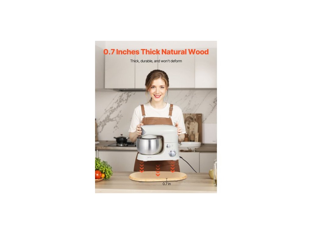 Posuvník mixéru , oválný 15,7 x 11,1 palce, kompatibilní s naklápěcí hlavou stojanového mixéru 5,5-8 Qt, PTFE nožičky, posuvný podnos na kuchyňskou linku, přírodní dřevo
