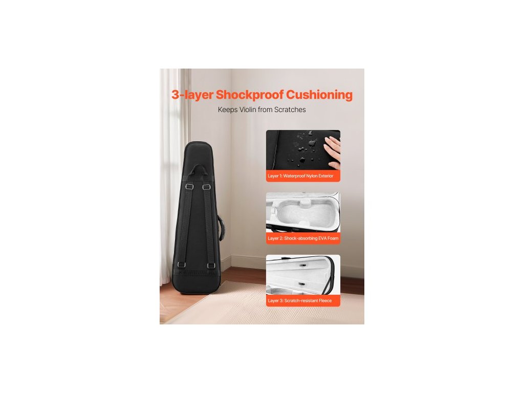 Pouzdro na housle 4/4 plné velikosti, nylonové vodotěsné, lehké přenosné cestovní pouzdro, s plyšovou podšívkou, dvojité ramenní popruhy, odolné proti poškrábání, profesionální trojúhelníkový tvar, pro housle, černéOdolné stínění