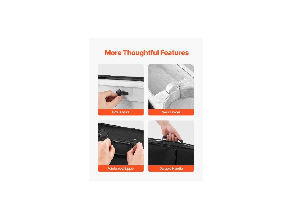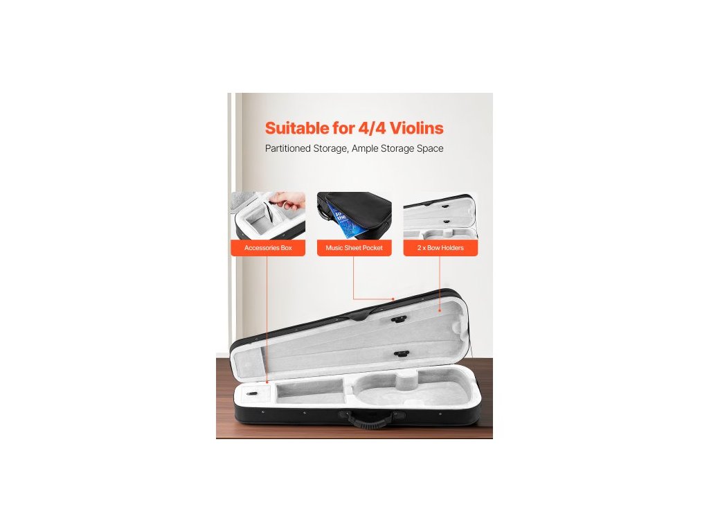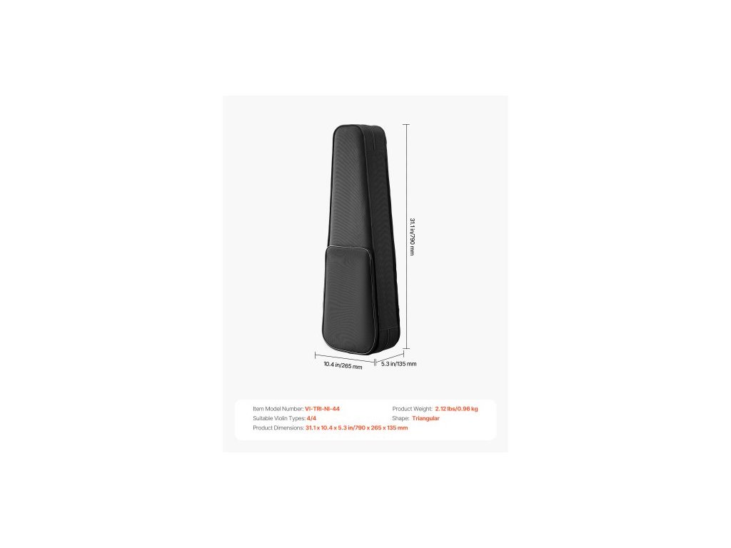 Tvar: Trojúhelníkový,Číslo modelu položky: VI-TRI-NI-44,Hmotnost výrobku: 2,12 lbs/0,96 kg,Vhodné typy houslí: 4/4,Rozměry výrobku: 31,1 x 10,4 x 5,3 palce/790 x 265 x 135 mm