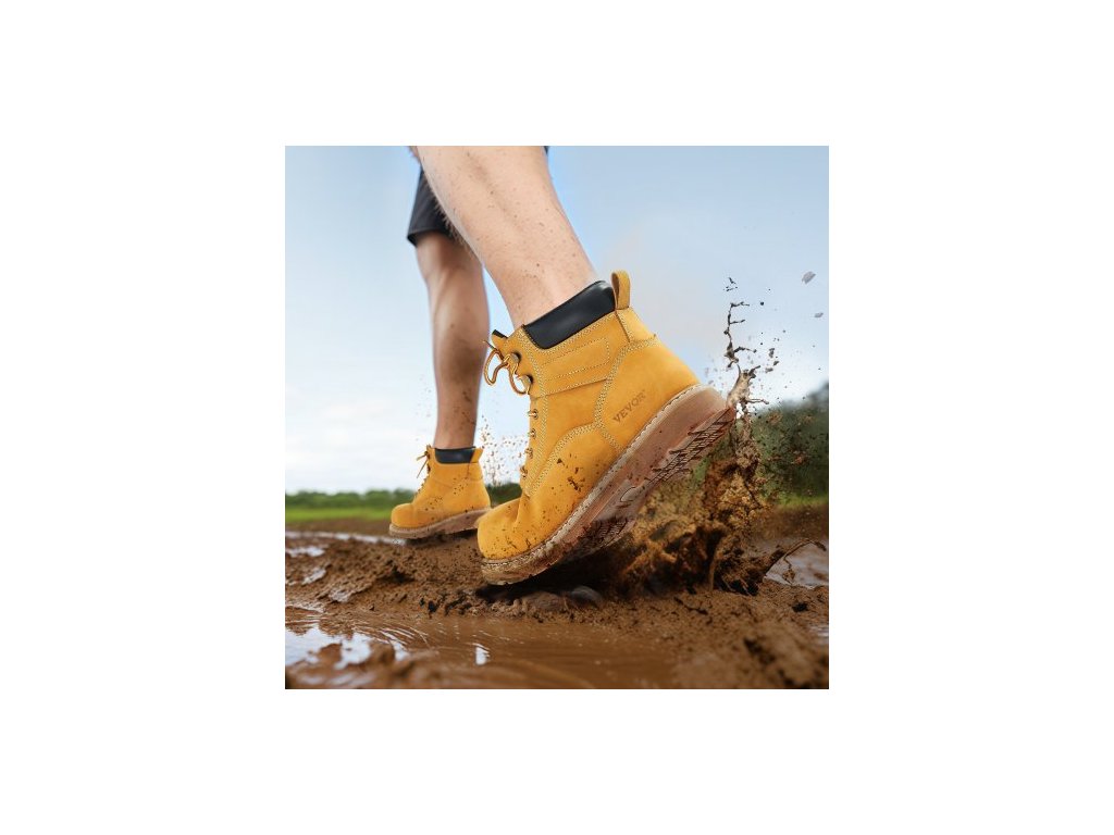 Pracovní boty s ocelovou špičkou, velikost UK 12, nepromokavé pracovní boty pro muže, protiskluzové pracovní boty, lehké a prodyšné pánské boty s gumovou podrážkou pro průmysl a stavebnictví, hnědožluté