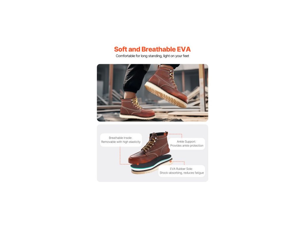 Pracovní boty s ocelovou špičkou, velikost UK 12, nepromokavé pracovní boty s mosaznou špičkou pro muže, protiskluzové pracovní boty, lehké a prodyšné pánské boty s podrážkou z gumy EVA pro průmysl a stavebnictví, hnědé