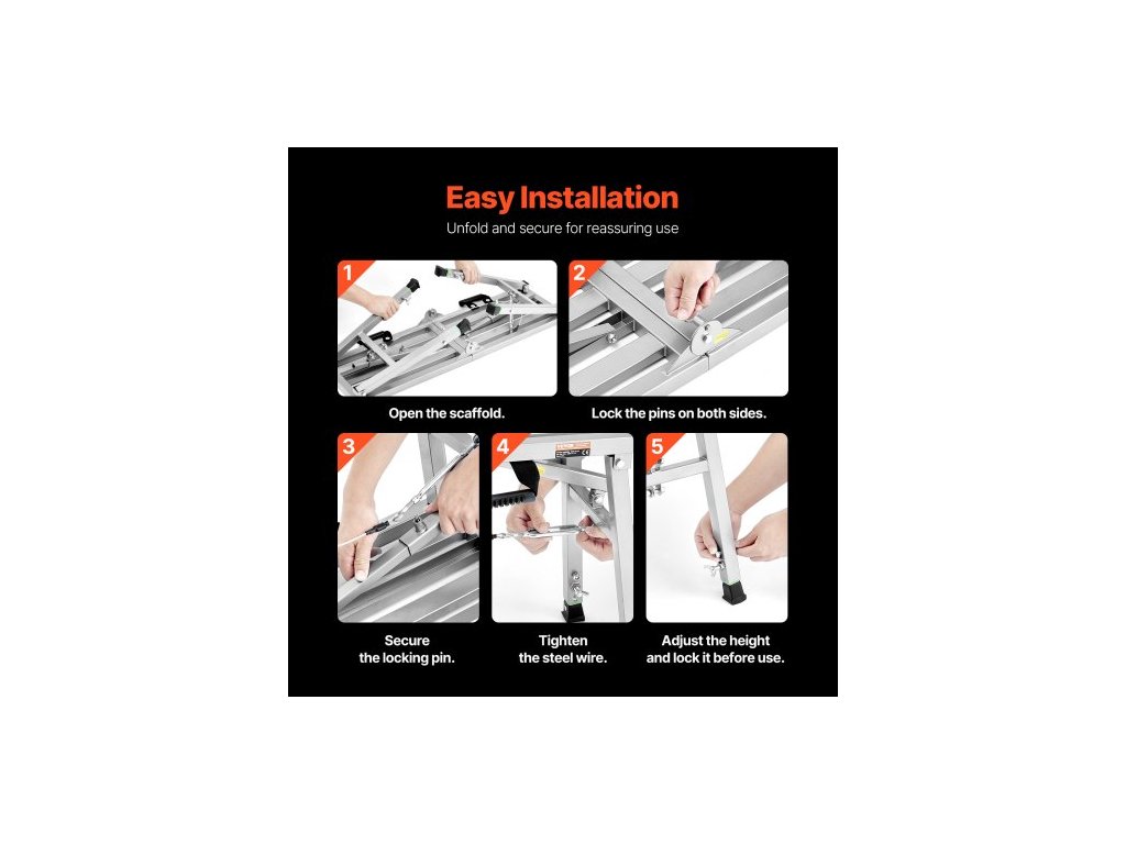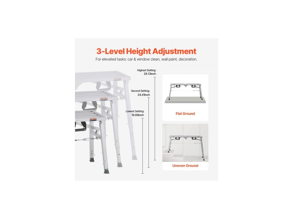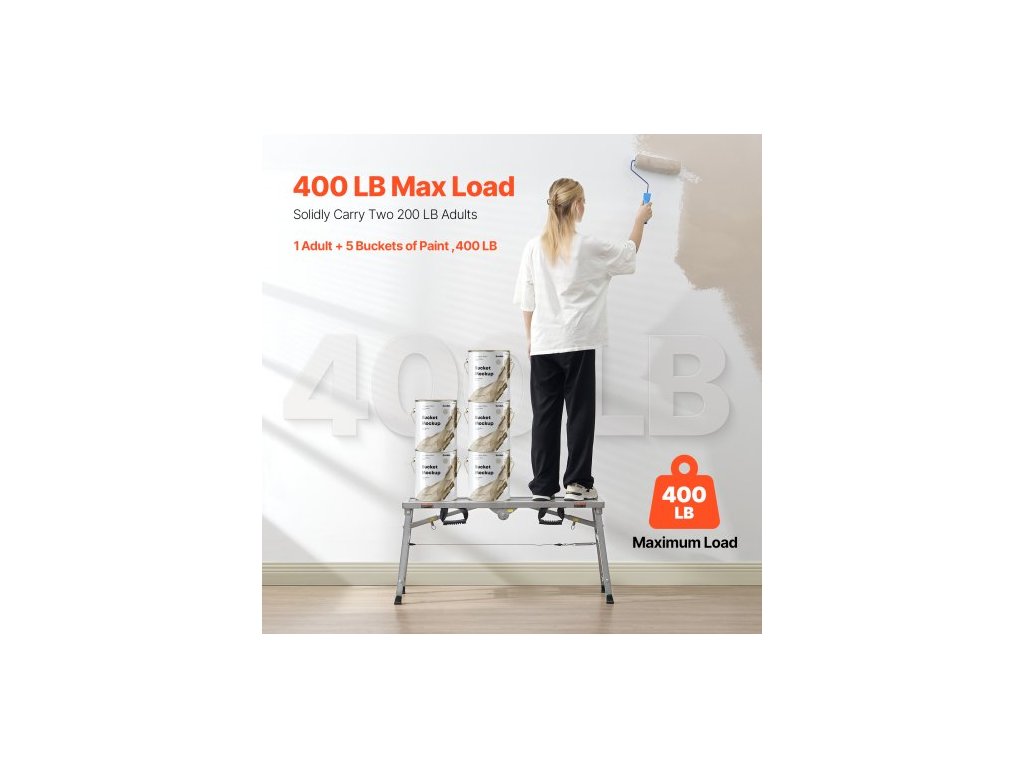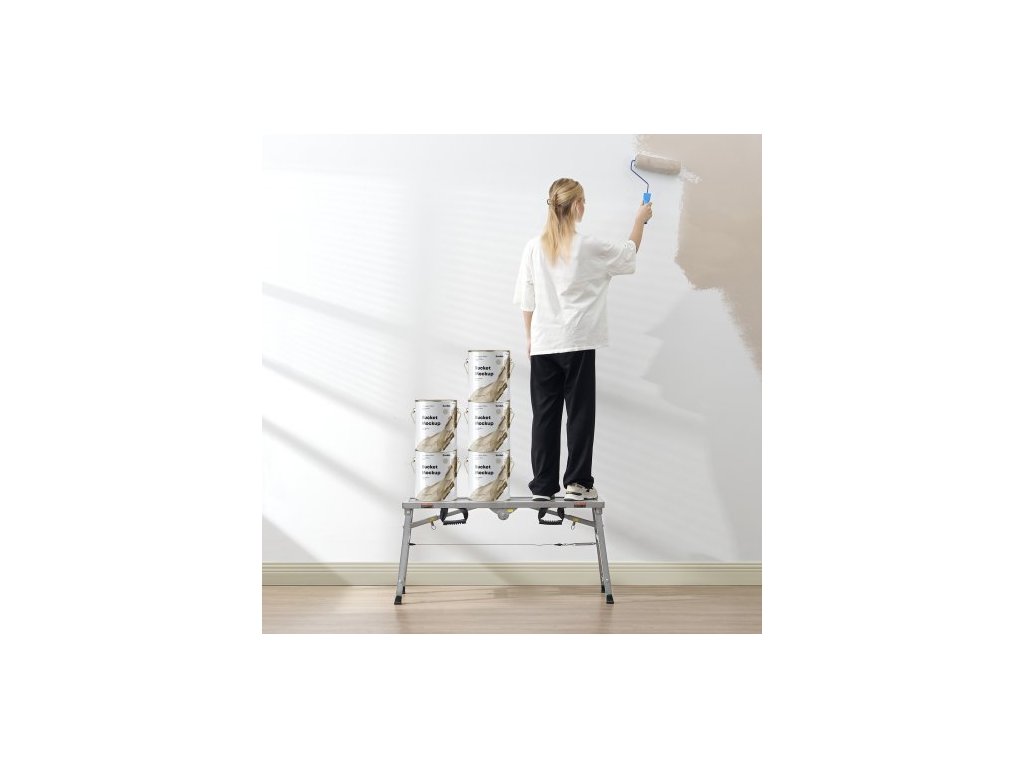 Pracovní plošina , 3 rychlostní stupně s nastavitelnou výškou, skládací žebřík z legované oceli, přenosná lešenářská plošina, nosnost 180 kg, protiskluzové gumové nožičky, malířská stolička na sádrokarton, pro čištění a mytíLehká a skládací