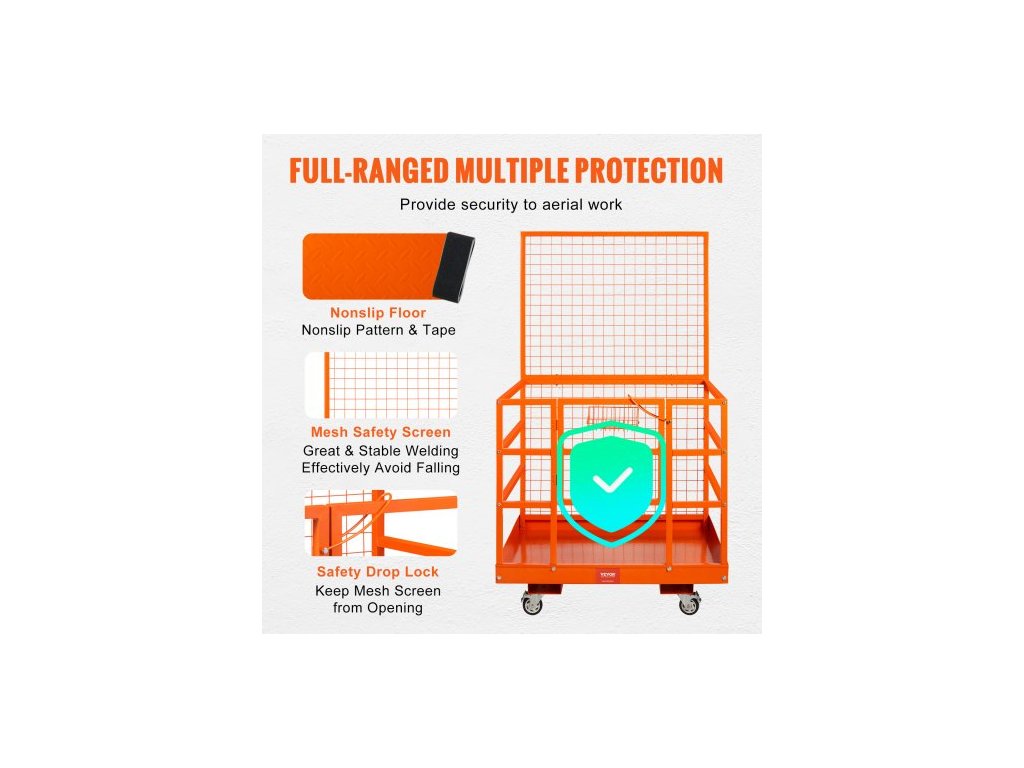 Pracovní plošina s bezpečnostní klecí pro vysokozdvižný vozík 109 x 114,3 cm 635 kg s kolečky pro plošinuBezpečnostní pojistka