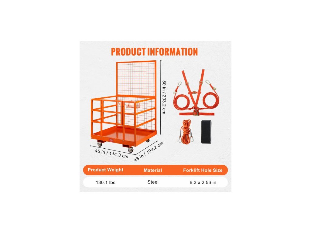 Pracovní plošina s bezpečnostní klecí pro vysokozdvižný vozík 109 x 114,3 cm 635 kg s koly pro plošinu
