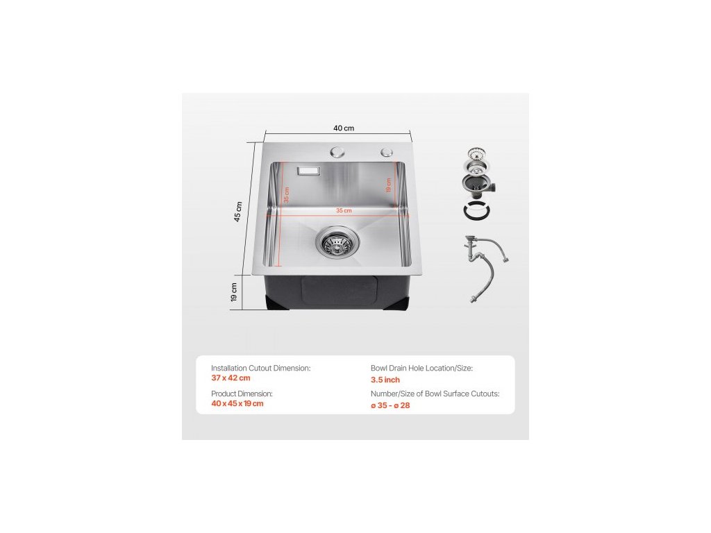 Pracovní stanice s kuchyňským dřezem 40 cm, dřezy z nerezové oceli 304 s horní montáží, vestavné jednodřezové umyvadlo ve venkovském stylu s příslušenstvím, dřezy do myčky nádobí pro karavany, přípravné kuchyně, prádelny, baryPraktický design