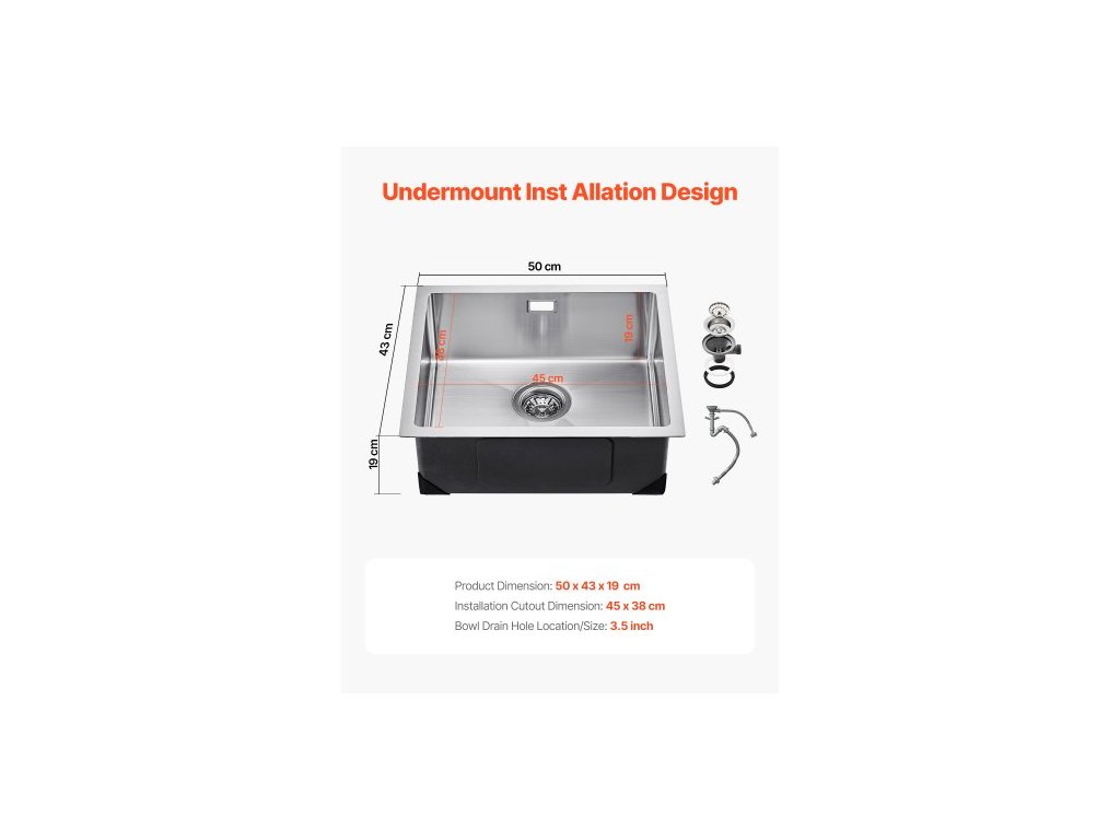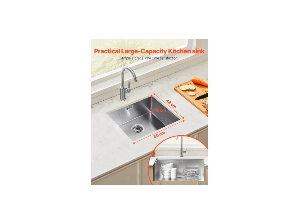 Pracovní stanice s kuchyňským dřezem 50 cm, nerezové dřezy pod dřez 304, vestavné jednodřezové umyvadlo ve stylu farmářského domu s příslušenstvím, myčky nádobí do obytných vozů, přípravných kuchyní, prádelen, barůPraktický design