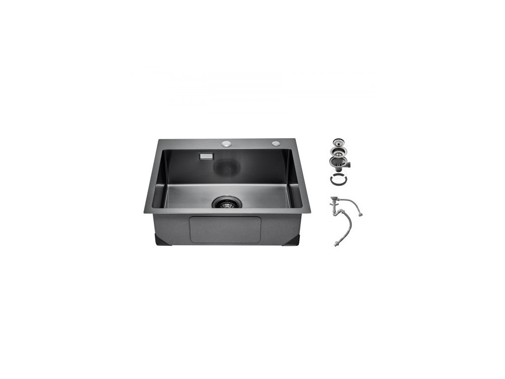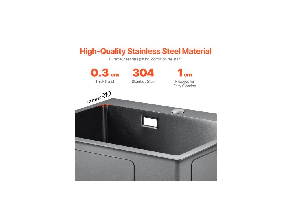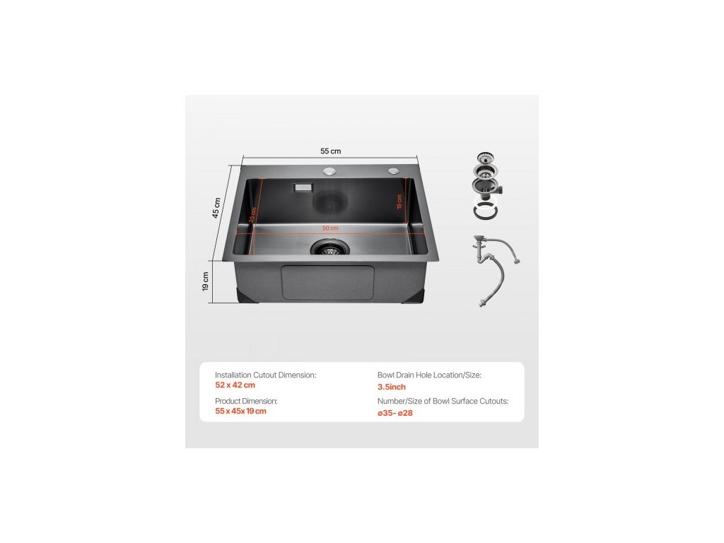 Pracovní stanice s kuchyňským dřezem 55 cm, nerezové dřezy s horní montáží 304, vestavné jednodřezové umyvadlo ve stylu farmhouse s příslušenstvím, myčky nádobí pro karavany, přípravné kuchyně a bary (černá)Praktický design