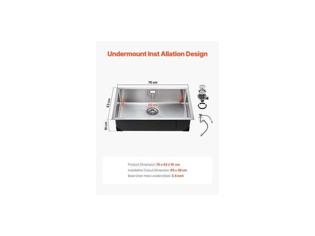 Pracovní stanice s kuchyňským dřezem 70 cm, nerezové dřezy pod dřez 304, vestavné jednodřezové umyvadlo ve stylu farmářského domu s příslušenstvím, myčky nádobí do obytných vozů, kuchyňských linek, prádelen a barůPraktický design