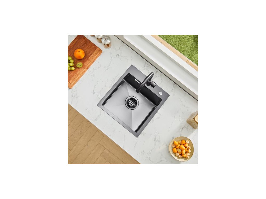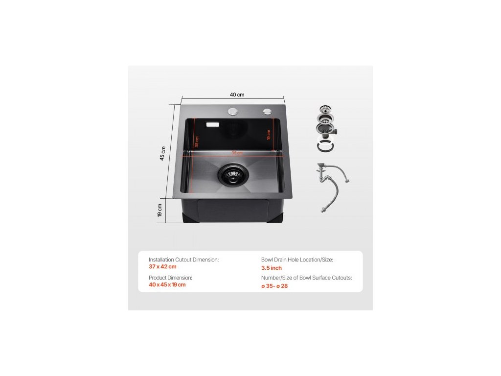 Pracovní stanice s kuchyňským dřezem 40 cm, dřezy z nerezové oceli 304 s horní montáží, vestavné jednodřezové umyvadlo ve stylu farmhouse s příslušenstvím, dřezy do myčky nádobí pro karavany, přípravné kuchyně a bary (černá)Praktický design