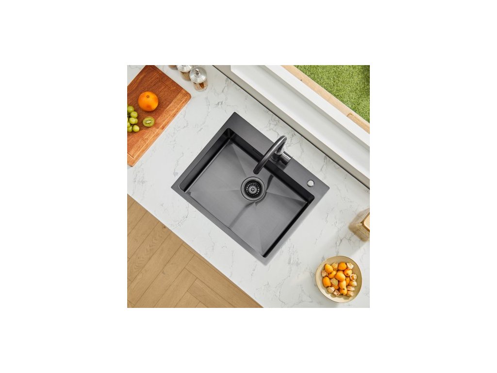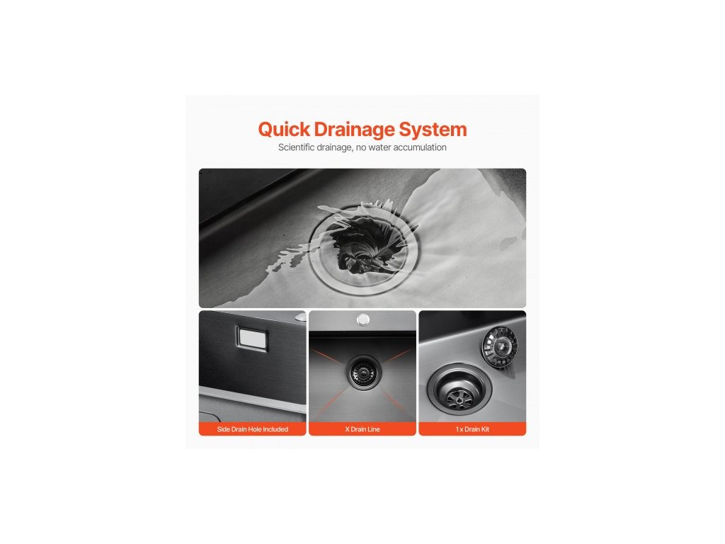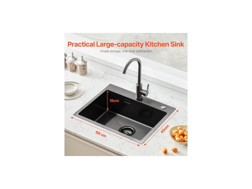 Pracovní stanice s kuchyňským dřezem 68 cm, nerezové dřezy s horní montáží 304, vestavné jednodřezové umyvadlo ve stylu farmhouse s příslušenstvím, myčky nádobí pro karavany, přípravné kuchyně a bary (černá)Praktický design