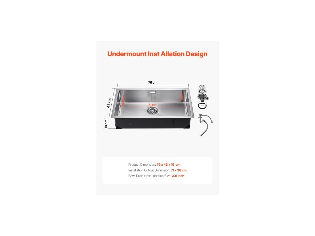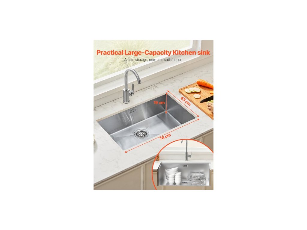 Pracovní stanice s kuchyňským dřezem 76 cm, nerezový dřez 304 pod myčku, vestavný dřez s jednou mísou ve stylu farmářského domu s příslušenstvím, dřez do myčky nádobí pro karavany, přípravné kuchyně, prádelny, bary