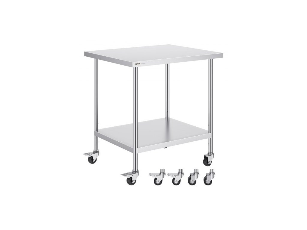 Pracovní stůl z nerezové oceli 30 x 36 x 38 palců, se 4 kolečky, 3 nastavitelné výšky, odolný pracovní stůl na přípravu jídla pro komerční kuchyně a restaurace, stříbrnýStylový pracovní stůl