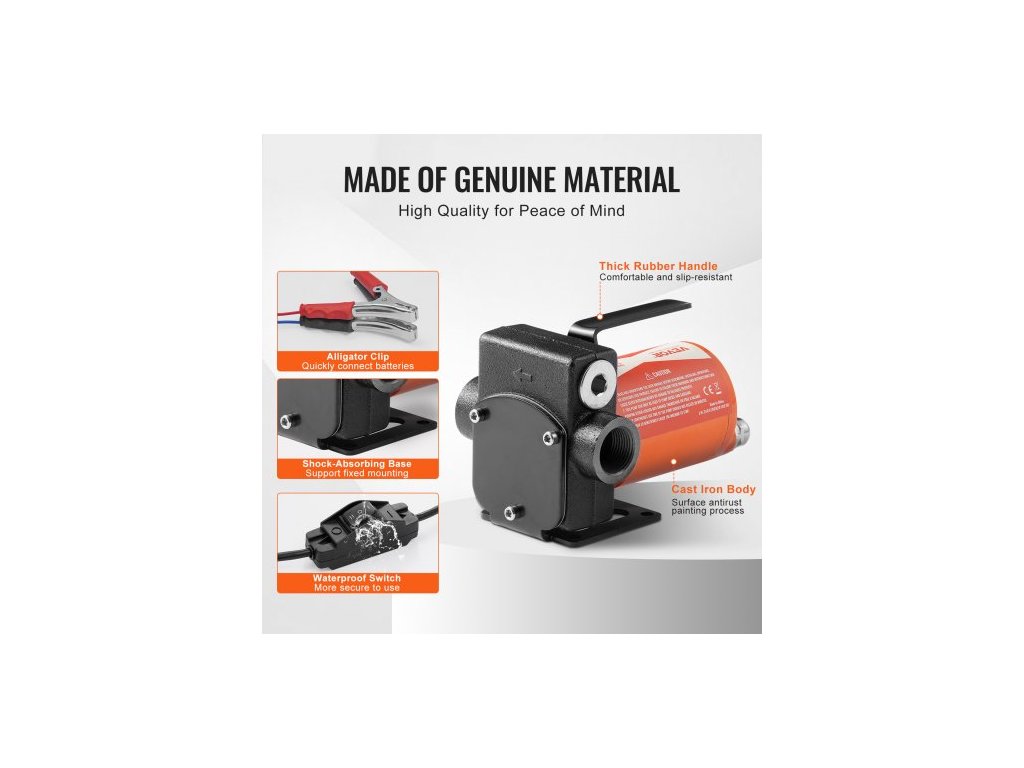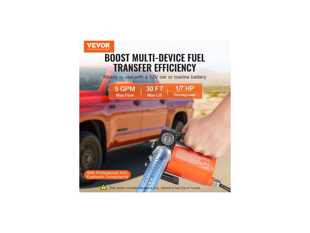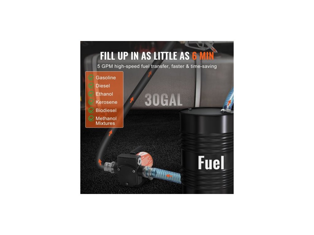 Přečerpávací palivové čerpadlo , 12V DC 19 l/min (5 GPM) 75 W (1/10 HP), přenosné elektrické přečerpávací čerpadlo na naftu s automatickým vypínáním palivové trysky, dlouhá vstupní a výstupní hadice pro směsi benzínu, nafty, petroleje a methanoluEfektivní dodávka paliva