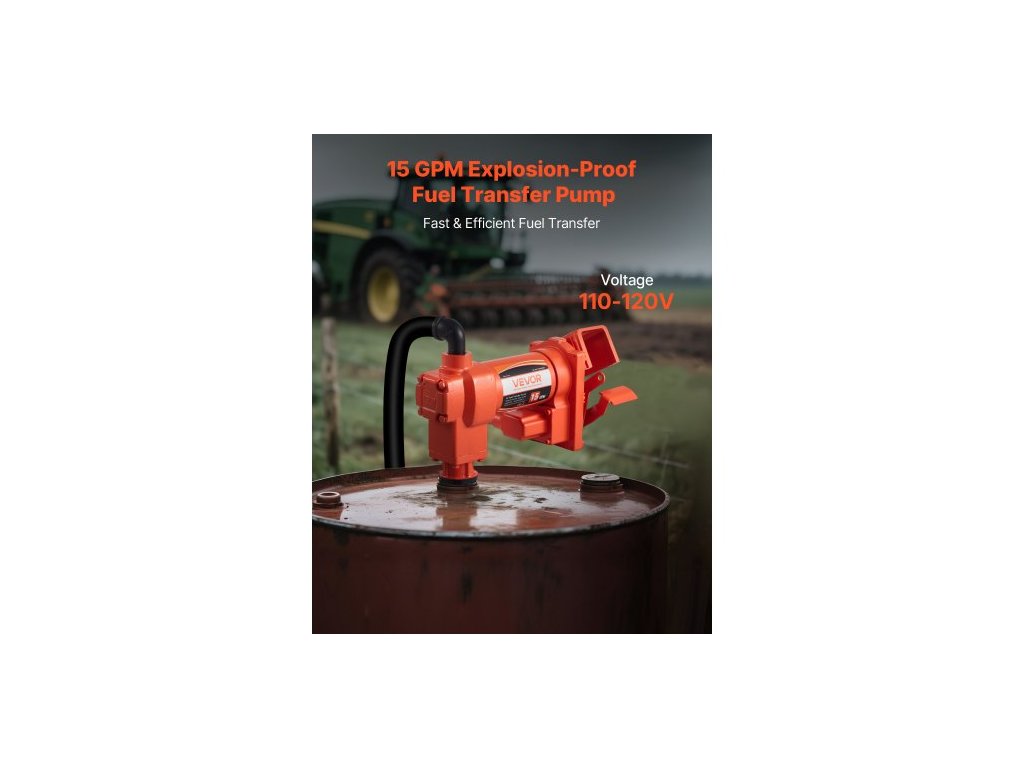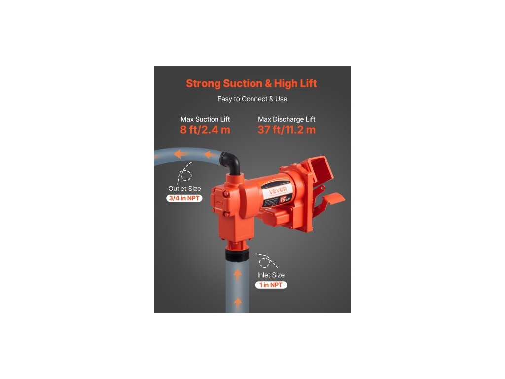 Přečerpávací palivové čerpadlo 230V, 15 GPM 57 l/min, elektrické přečerpávací olejové čerpadlo na střídavý proud, maximální sací výška 8 ft/2,4 m, maximální sací výška 37 ft/11,28 m, ochrana proti přehřátí, pro benzín, naftu, petrolej, bionaftu a etanolVysoký průtok a vysoká účinnost přečerpávání paliva