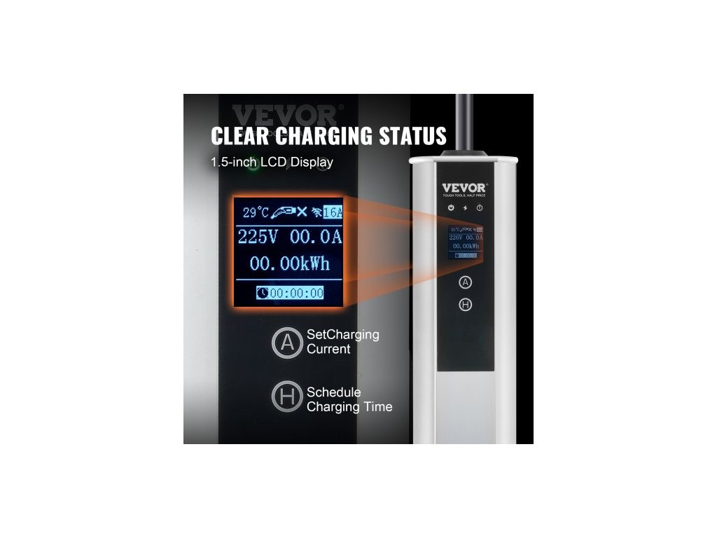 Přenosná nabíječka elektromobilů Typ 2, 16A 3,68 kW/11 kW, Nabíječka elektromobilů do auta s 7,5m nabíjecím kabelem, zástrčka CEE 16 LCD, Domácí nabíjecí stanice pro elektromobily IEC 62196 s přepravní taškou a hákem na nabíjecí kabel, IP66Nastavitelný proud