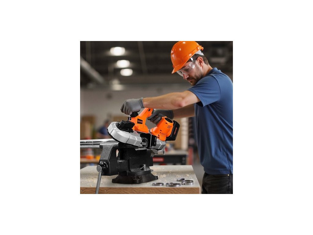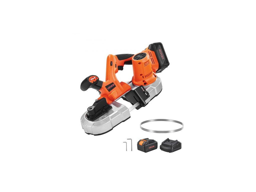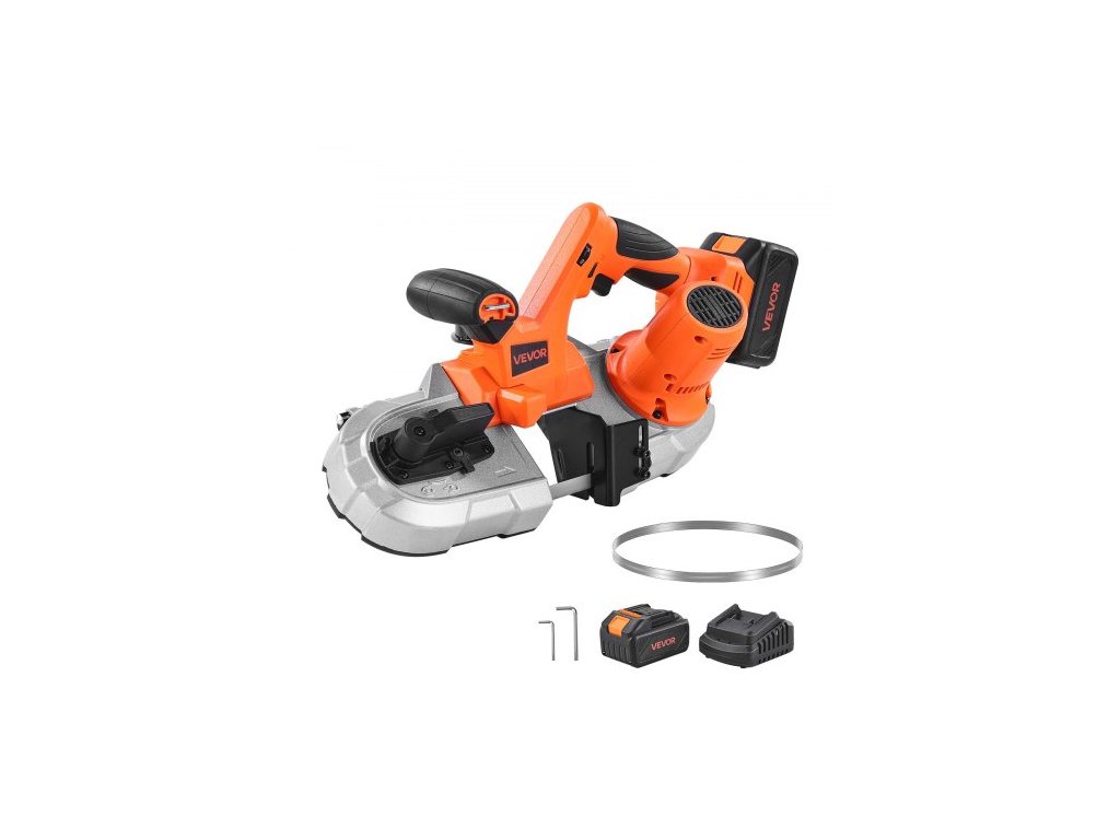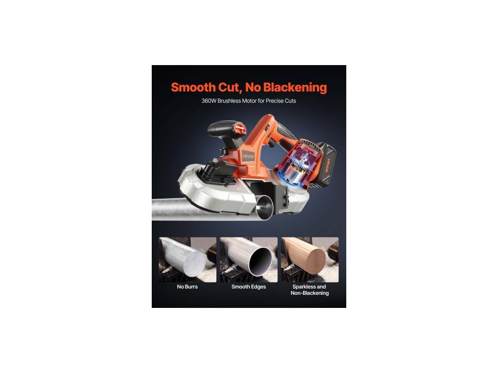 Přenosná pásová pila 20V, hloubka řezu 65 x 65 mm, AC 220V, 360W pásová pila s bezkartáčovým motorem, baterie 4,0 Ah, akumulátorová a kompaktní přenosná pásová pila, variabilní rychlost 0–192 m/min, pro řezání kovu a dřevaHloubka řezu 2,56 palce