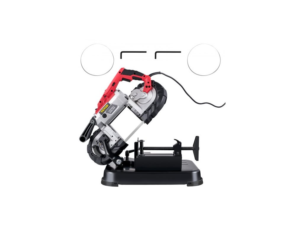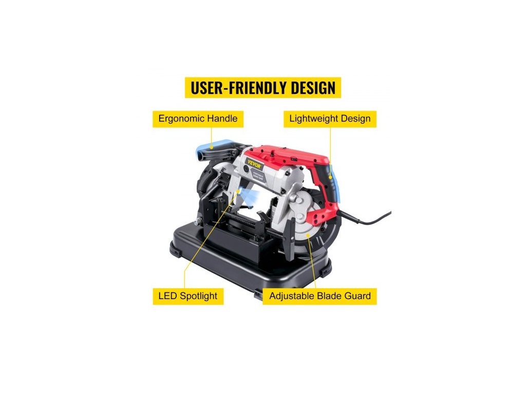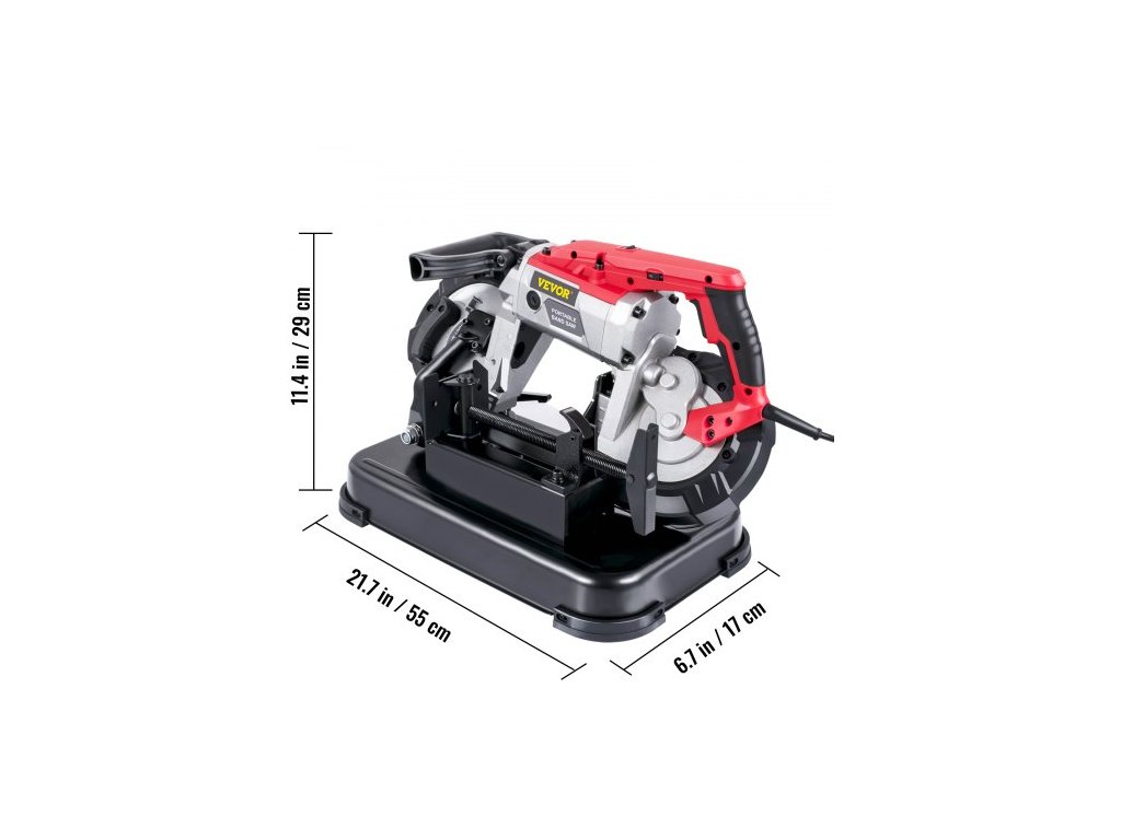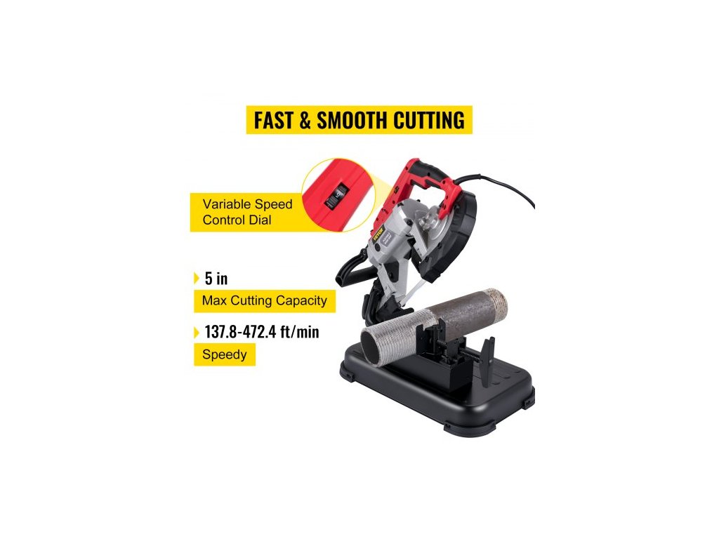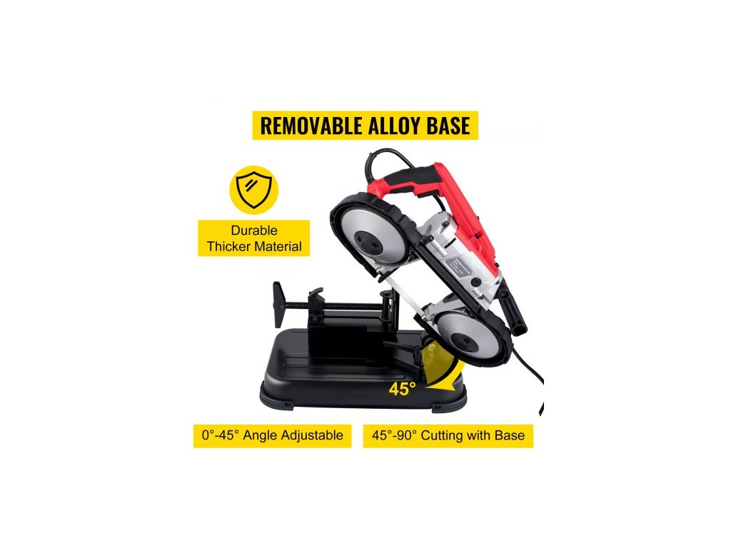 Přenosná pásová pila , hloubka řezu 127 mm x 127 mm s odnímatelnou základnou z legované oceli, akumulátorová pásová pila, ruční pásová pila, přenosná pásová pila s proměnnou rychlostí, motor 10 A, hluboké řezy, pásová pila na kov a dřevoRychlé a plynulé řezání