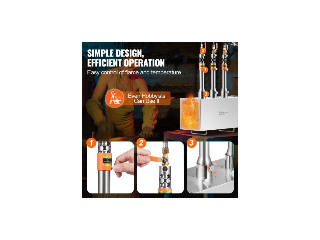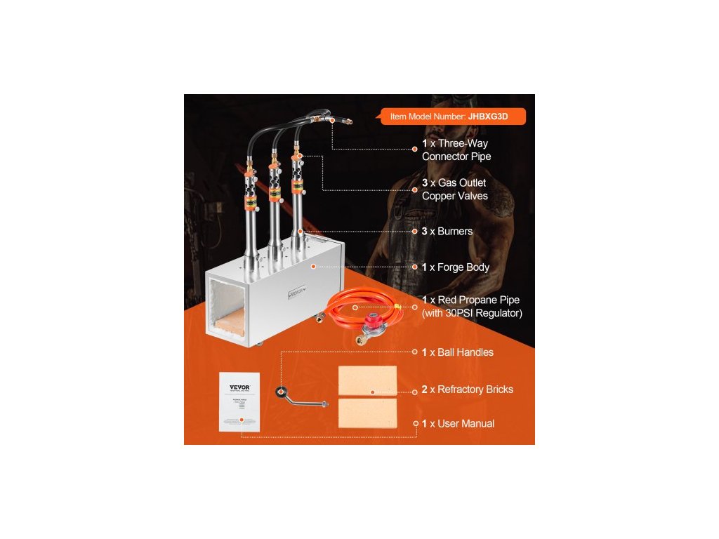 Přenosná propanová kovárna , kovárna se 3 hořáky, kovárna nástrojů a nožů s teplotou 2600℉, plynová kovárna s velkou kapacitou, čtvercové nerezové kovací nástroje a vybavení pro kování kovůPrémiová kovárna