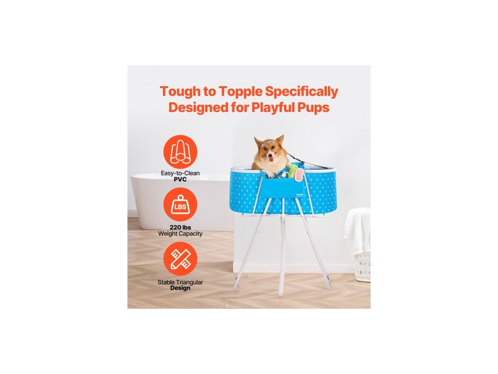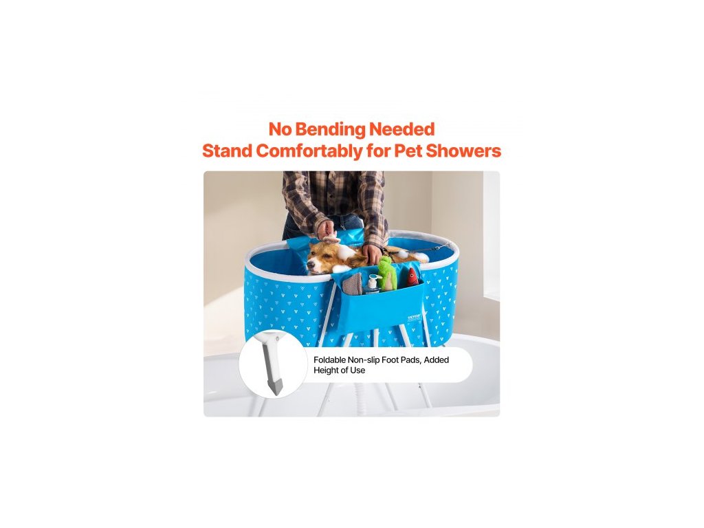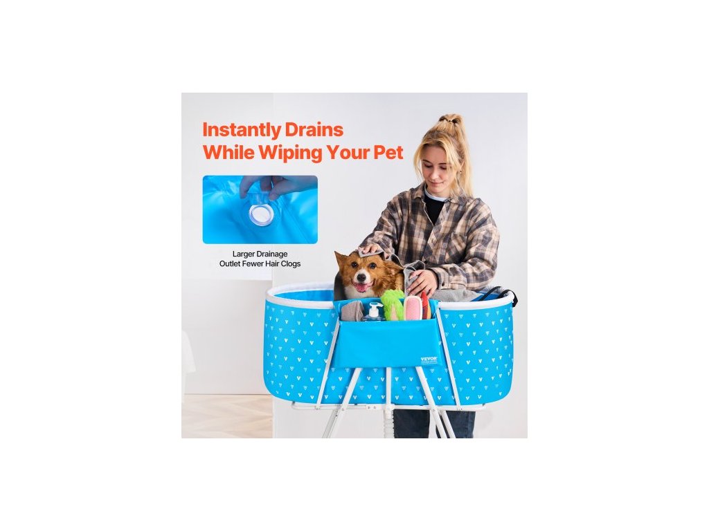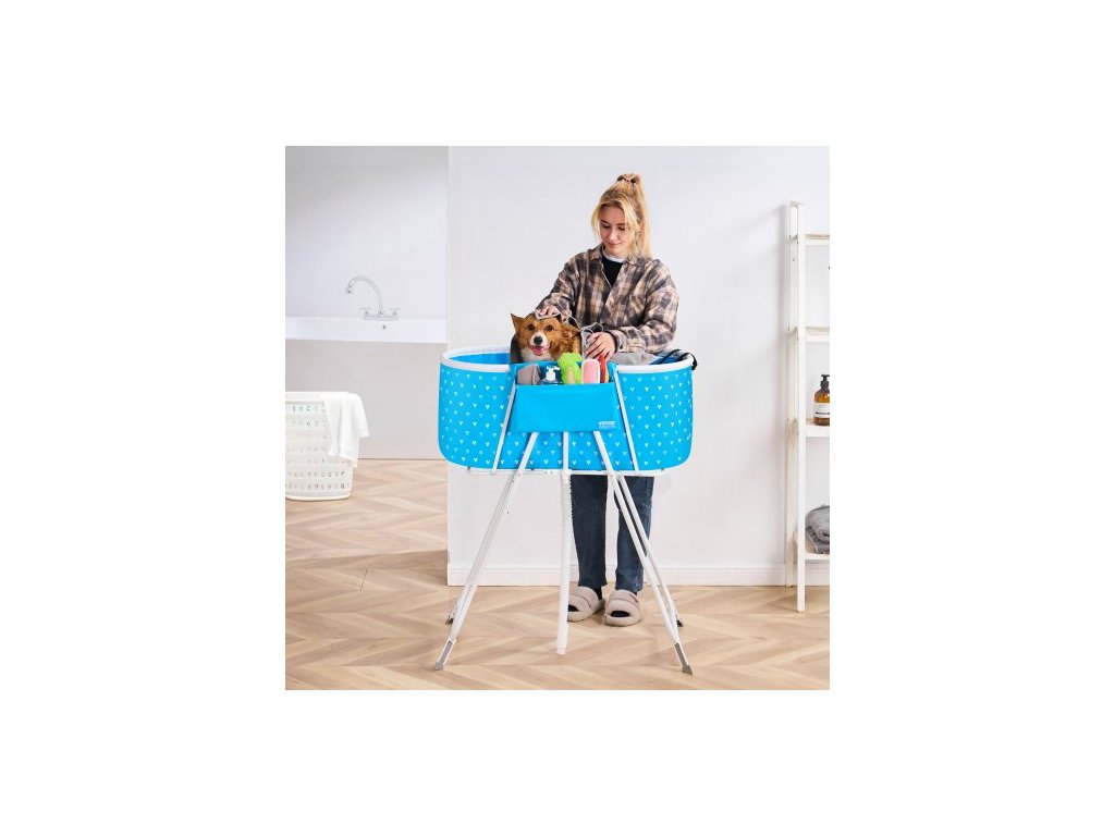 Přenosná psí vana , zvýšená a skládací, prostorově úsporná sprchová stanice pro domácí mazlíčky s rychlým odvodněním, koupací vana pro mytí a péči o srst malých a středních psů a koček uvnitř i venku, světle modráSkládací pro snadné skladování