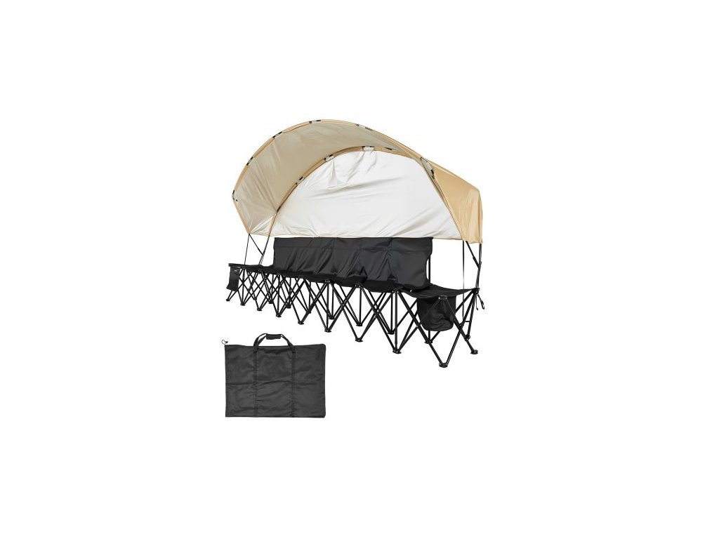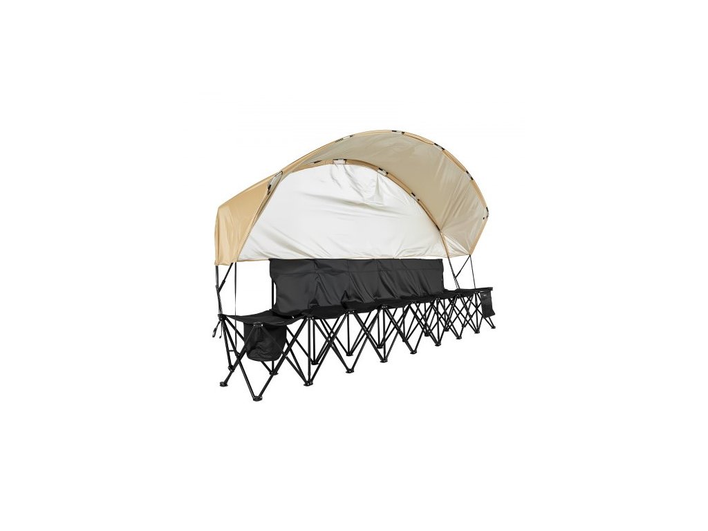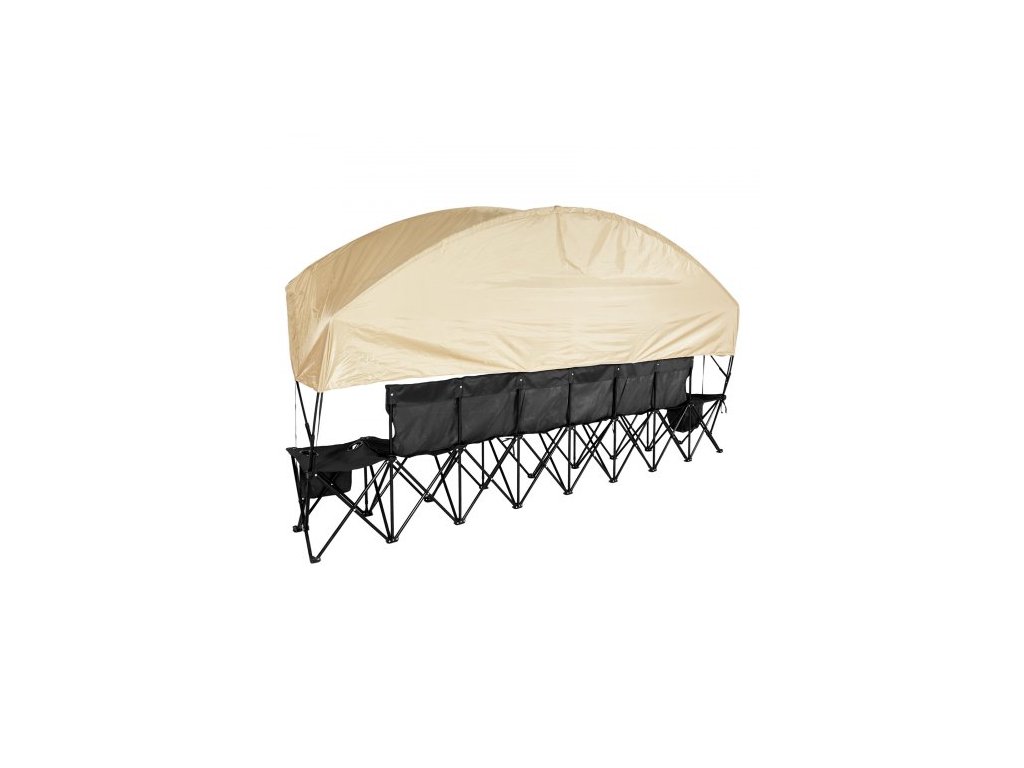 Přenosná skládací lavička , 6místná fotbalová lavička s úložnými kapsami, držáky na nápoje a přepravní taškou, lehké boční sezení se sluneční clonou pro fotbal, baseball, kempování, venkovní akce, černá