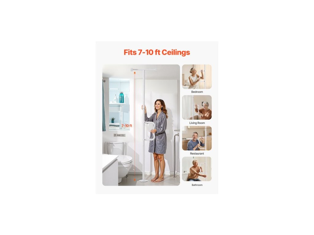 Přenosná tyč od podlahy ke stropu, madlo do koupelny s protiskluzovou zakřivenou rukojetí, bezpečnostní tyč s nosností 136 kg pro seniory, ideální bezpečnostní tyč pro seniory do stropů o výšce 2,1–3 metry, bíláSnadné stání nebo sezení