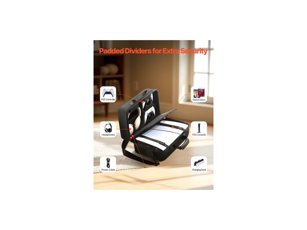 Přenosné pouzdro pro PS5, cestovní taška pro Playstation 5, tenká nárazuvzdorná EVA pena, měkká vnitřní podšívka a polstrované přepážky pro extra ochranu, prostorné provedení s rukojetí pro uložení, doma i na párty.