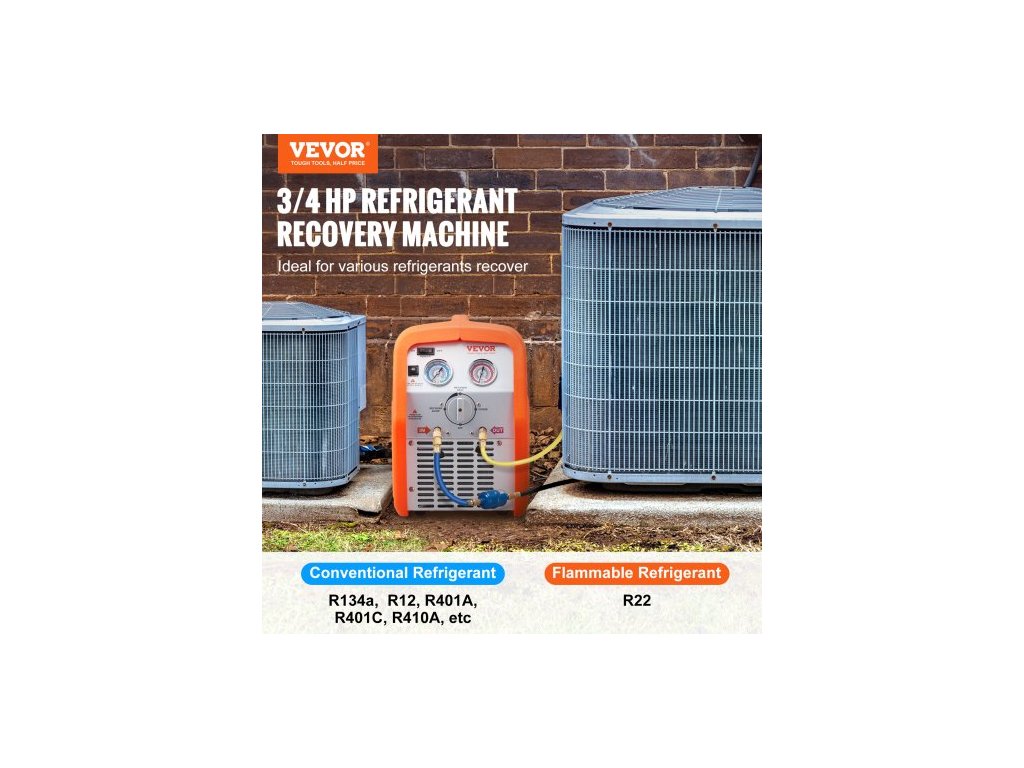 Přenosný 3/4 HP stroj na odsávání chladiva - Stroj na odsávání klimatizace s ochranou proti vysokému tlaku 220-240V 60Hz Stroj na odsávání HVAC pro plynné kapalné chladivo, klimatizace do auta