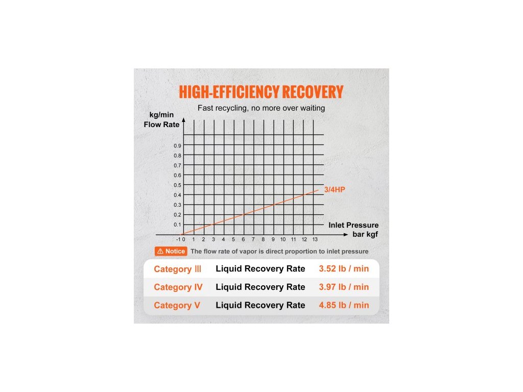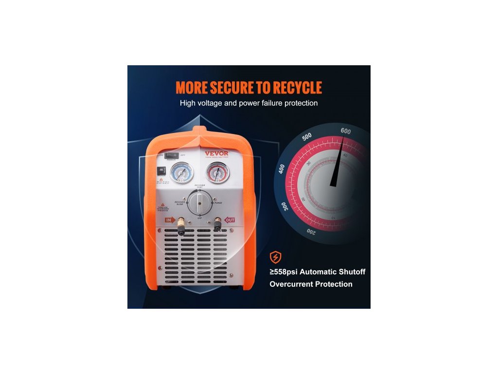 Přenosný odsávač chladiva 3/4 HP - odsávač klimatizace s ochranou proti vysokému tlaku 220-240V 60Hz, odsávač HVAC pro kapalná chladiva, klimatizace do autaPřesný tlakoměr