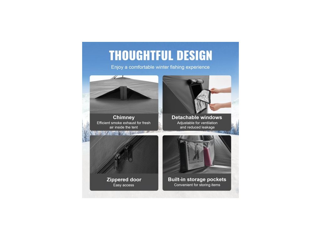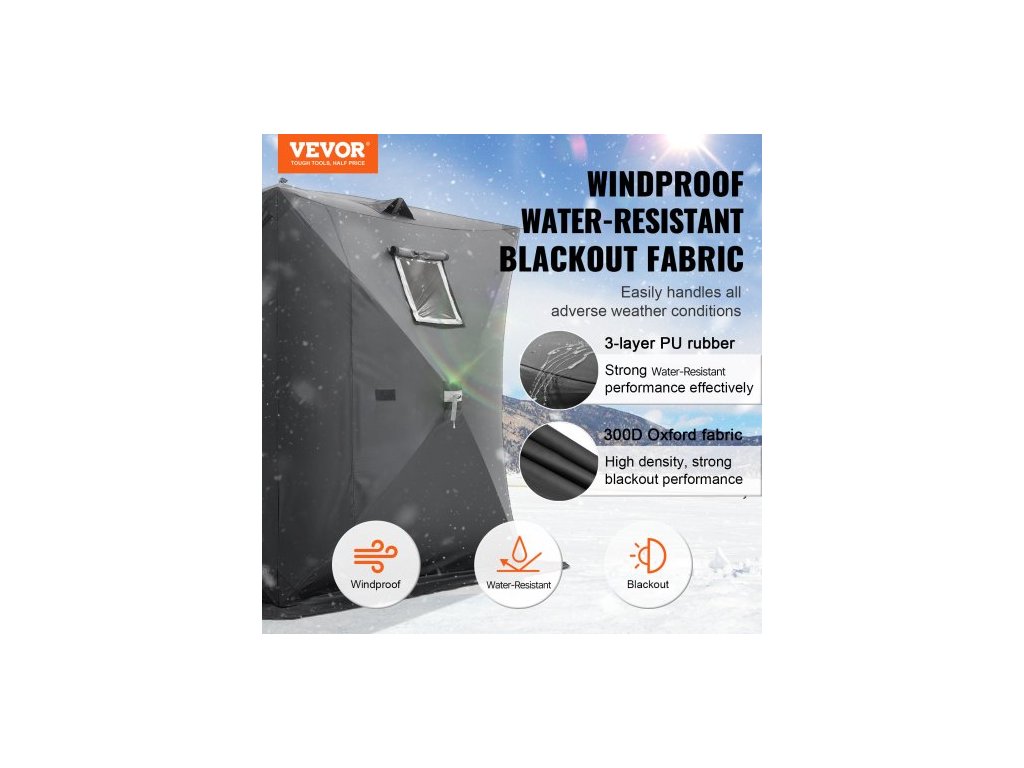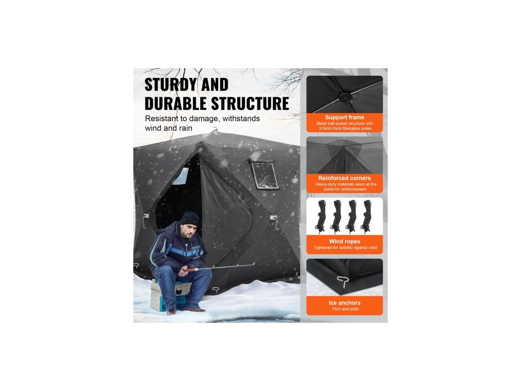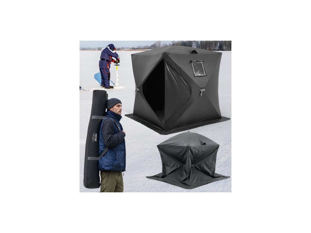 Přenosný ledový přístřešek , rozkládací stan pro rybaření na ledě pro 3-4 osoby, plocha pro rybolov 43 čtverečních stop, ledová chatrč pro zimní rybolov, vodotěsná kostka ledu Oxford s kotvami/lany/přepravní taškou, 90"x90", černáVysoká kvalita
